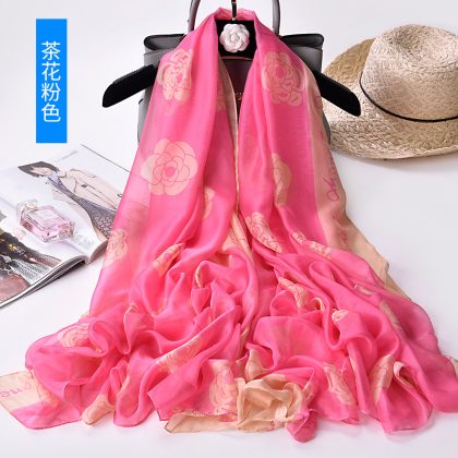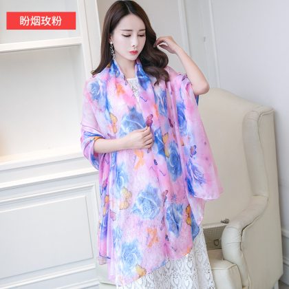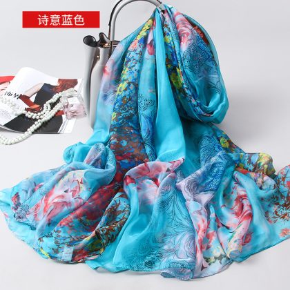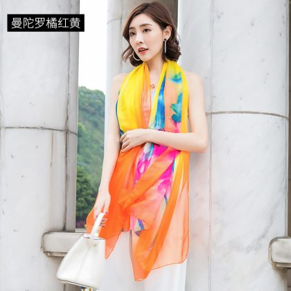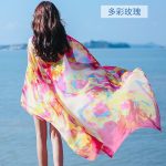 Silk Scarf Women’s All-match Chiffon Scarf Oversized Sunshade Beach Scarf Summer Travel Sunscreen Simple Variety Printing Scarf