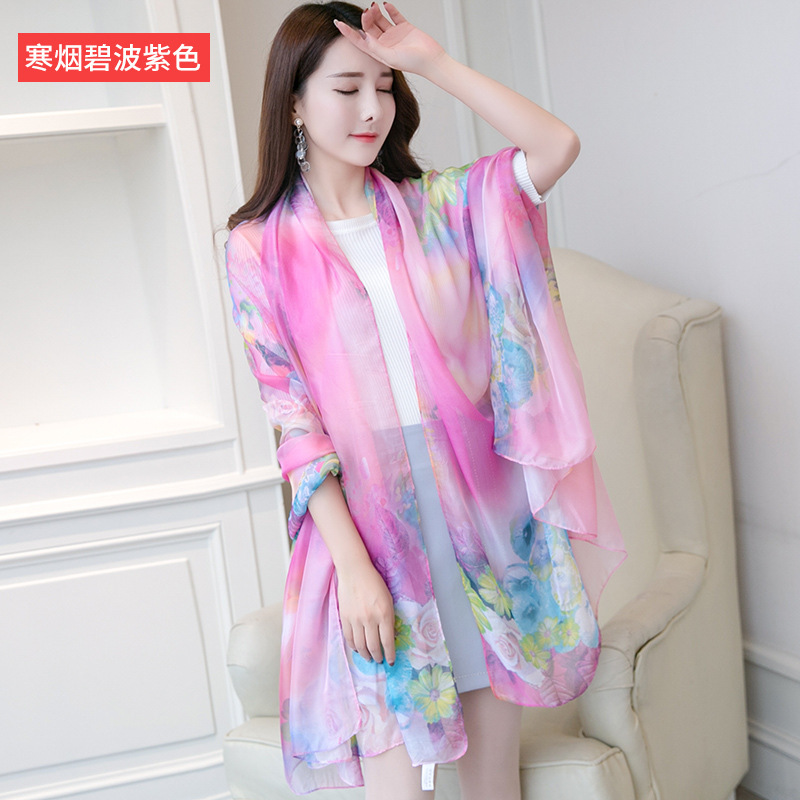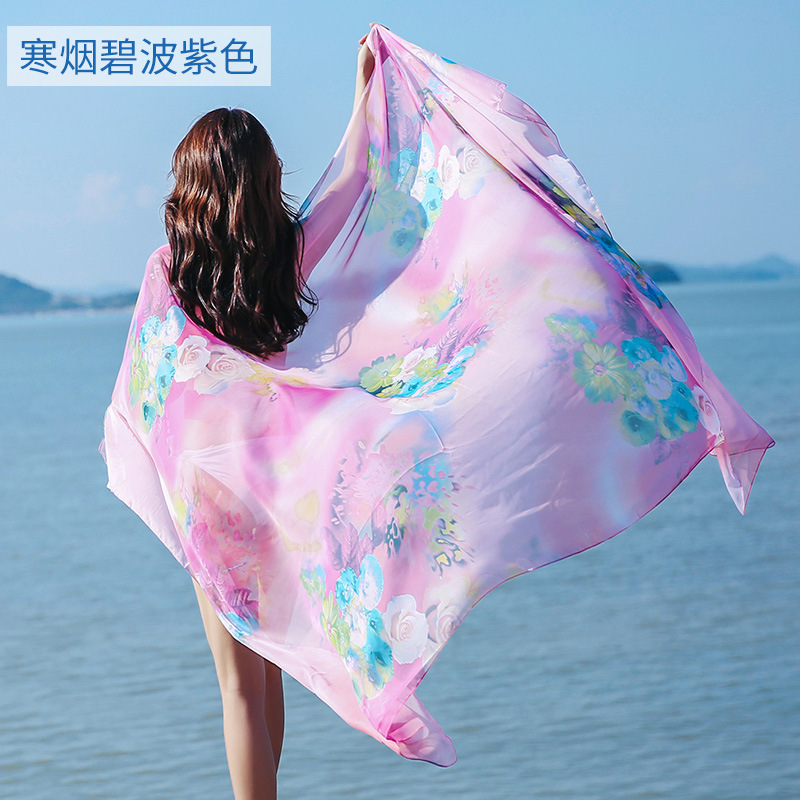 Silk Scarf Women's All-match Chiffon Scarf Oversized Sunshade Beach Scarf Summer Travel Sunscreen Simple Variety Printing Scarf