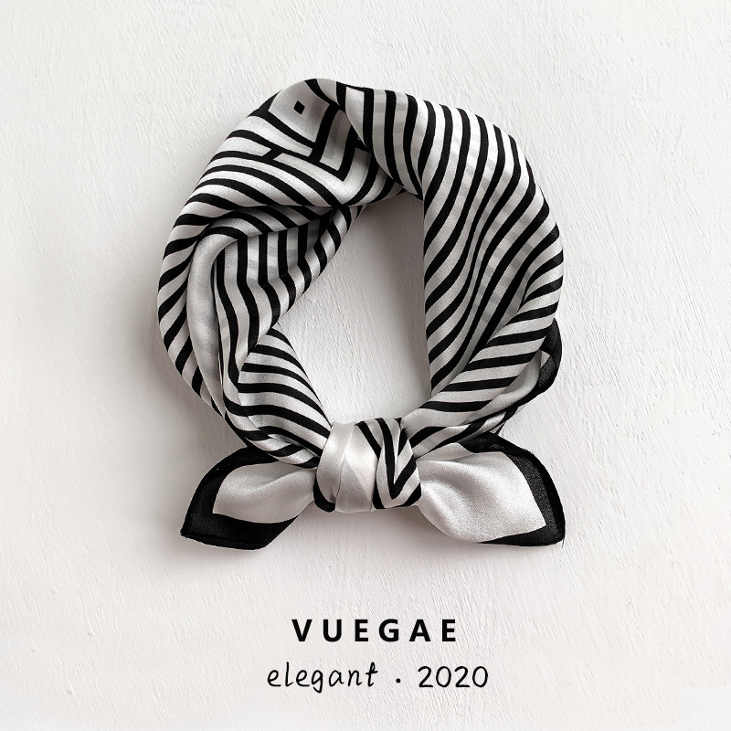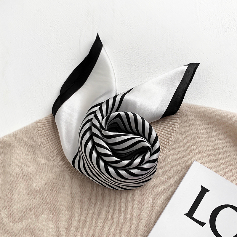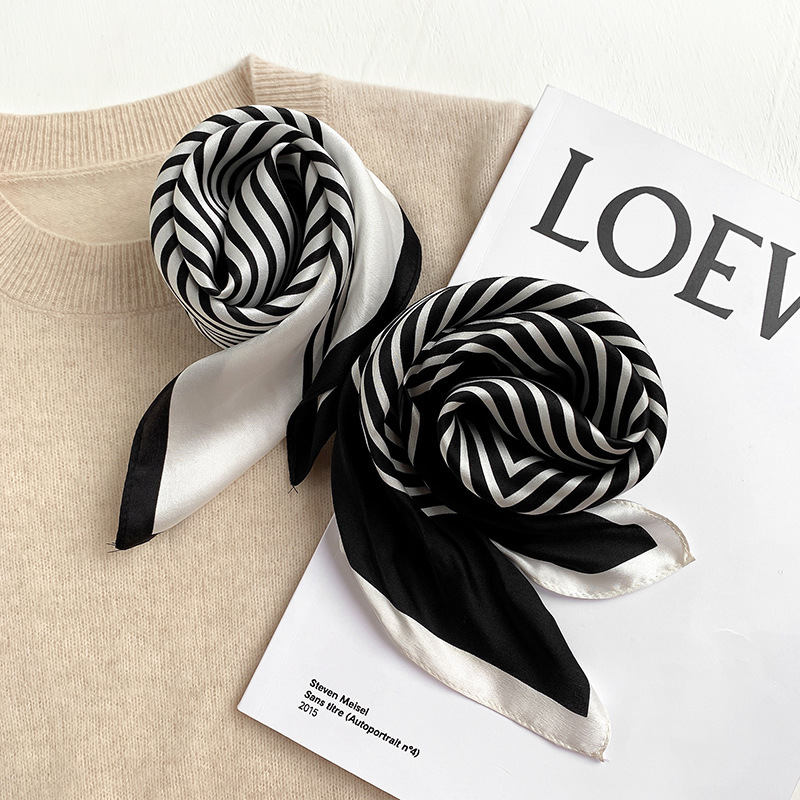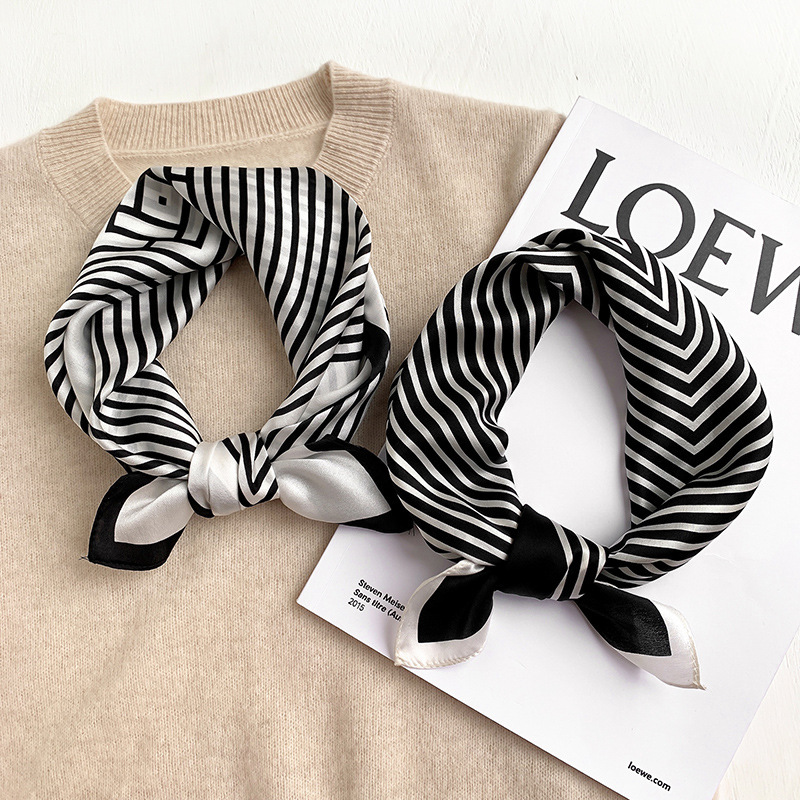Silk Scarf Women’s Korean-style Simple Fashion Silk Scarf Spring and Autumn Summer Thin Printed Decorative Black and White Striped Small Square Scarf