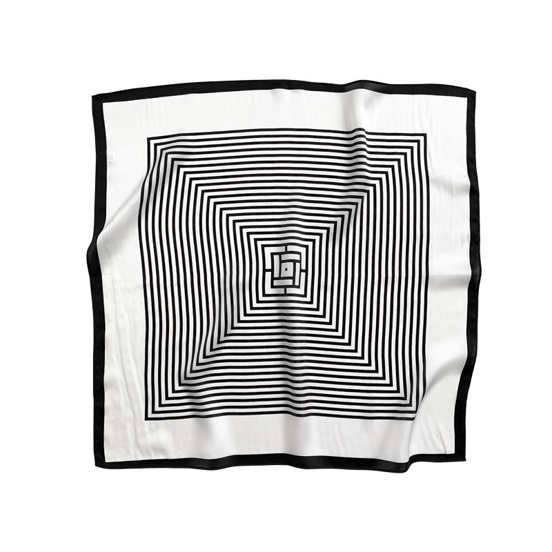 Silk Scarf Women's Korean-style Simple Fashion Silk Scarf Spring and Autumn Summer Thin Printed Decorative Black and White Striped Small Square Scarf