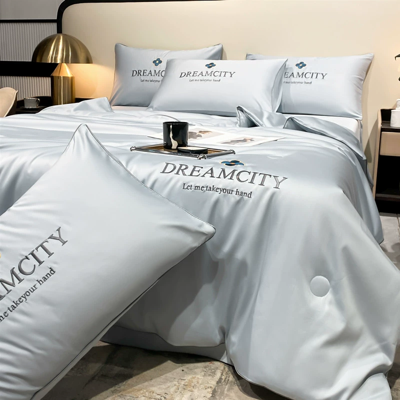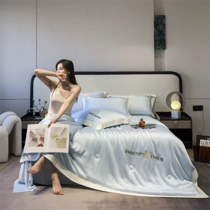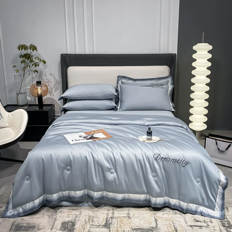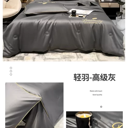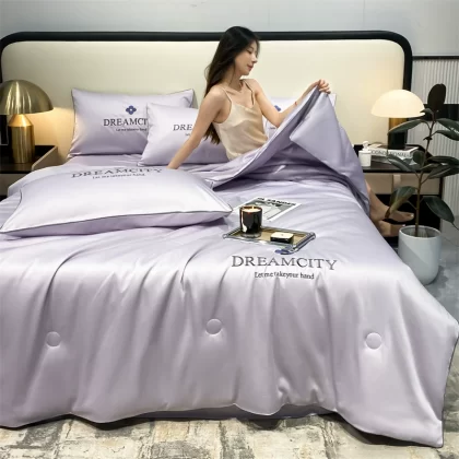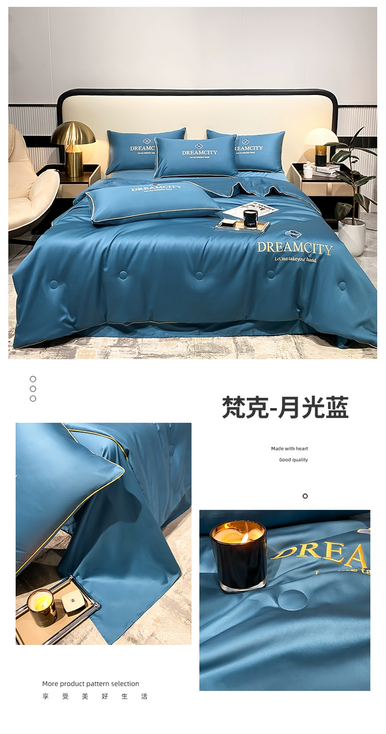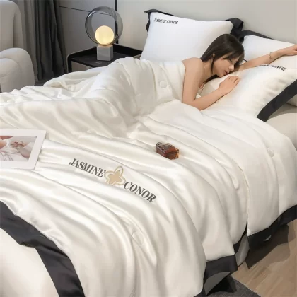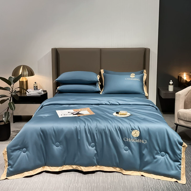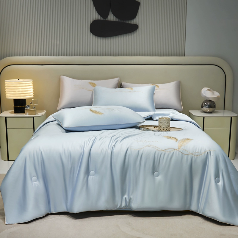 Silk summer cool quilt machine washable summer high-end double-sided Tencel thin air-conditioning quilt three- or four-piece ice silk set