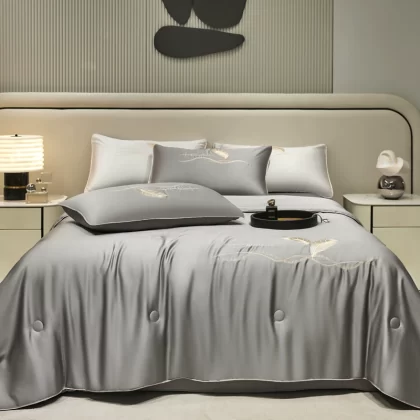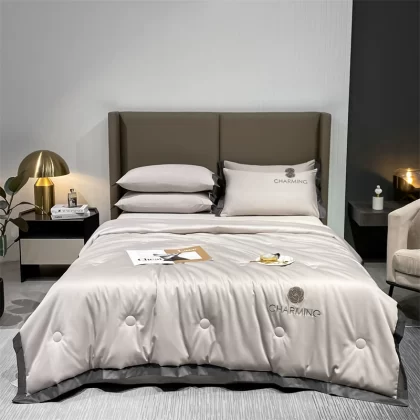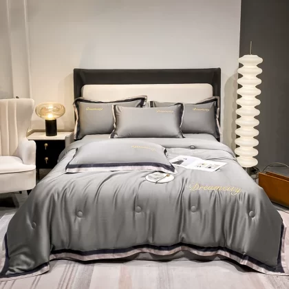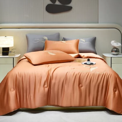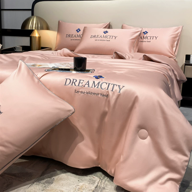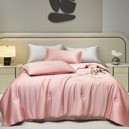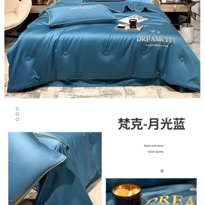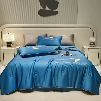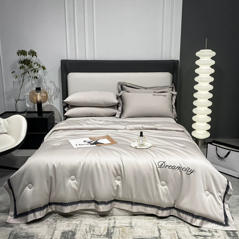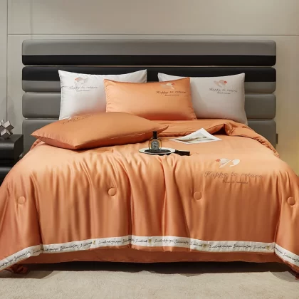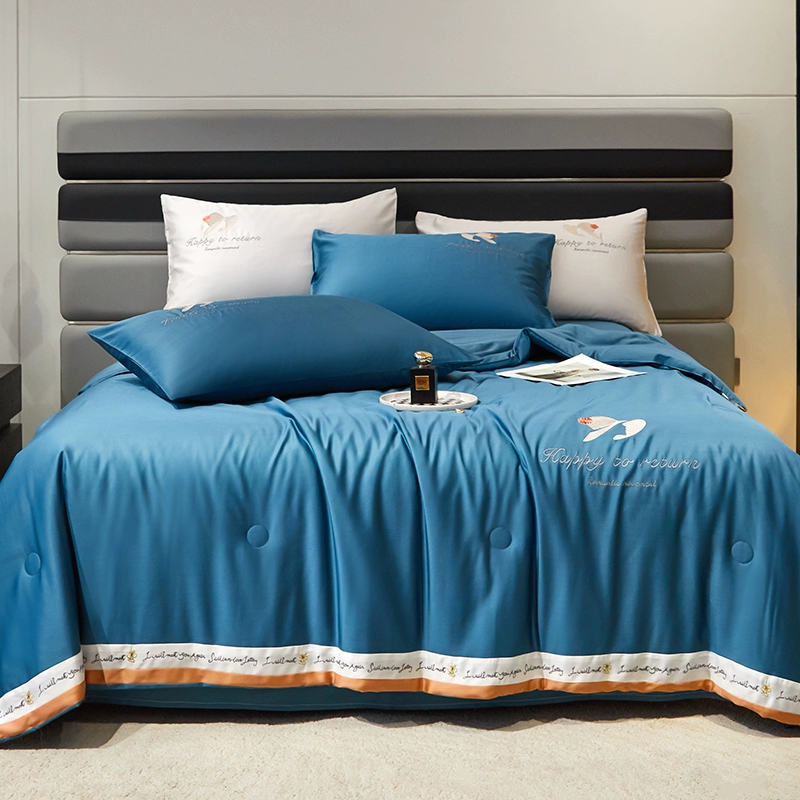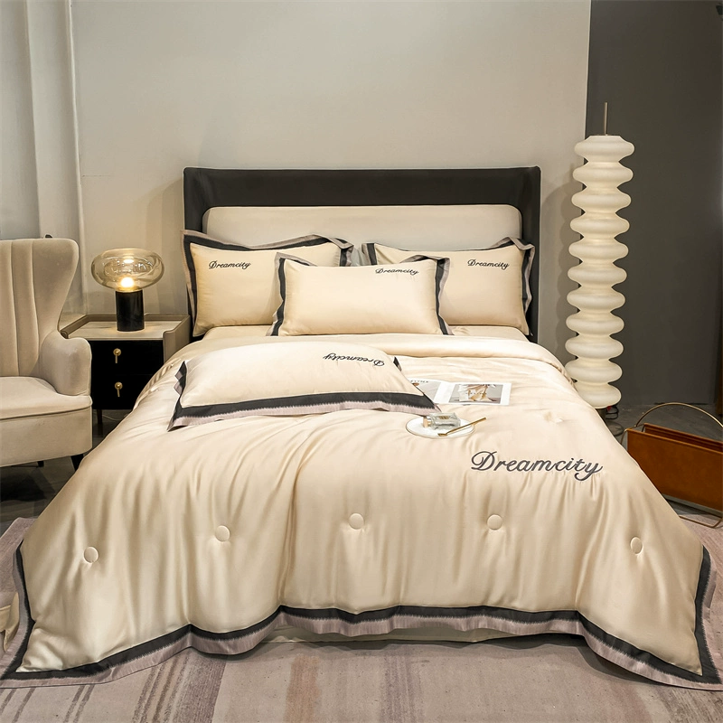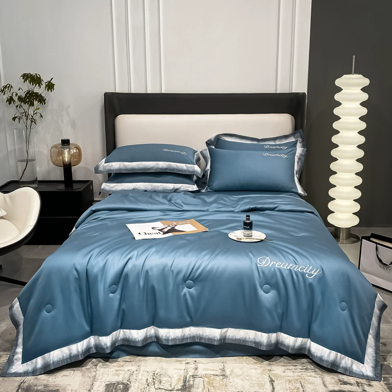 Silk summer cool quilt machine washable summer high-end double-sided Tencel thin air-conditioning quilt three- or four-piece ice silk set