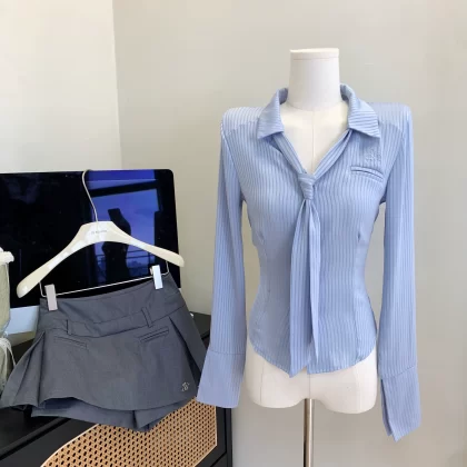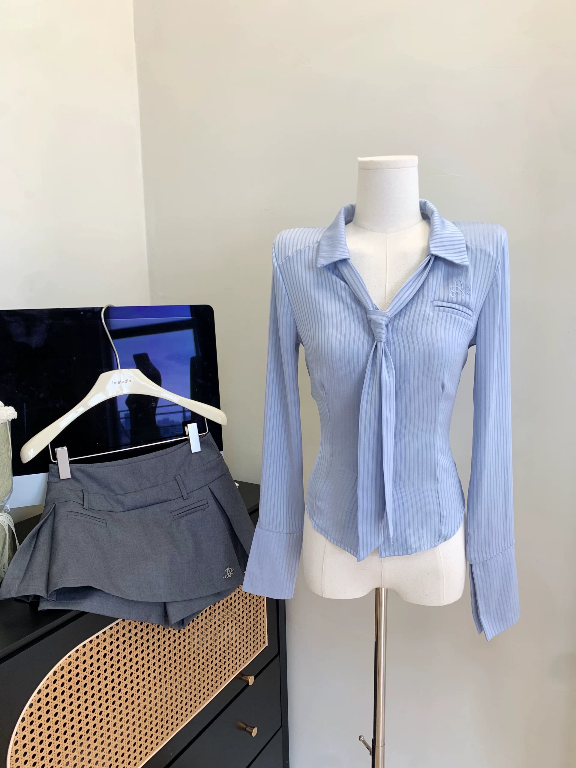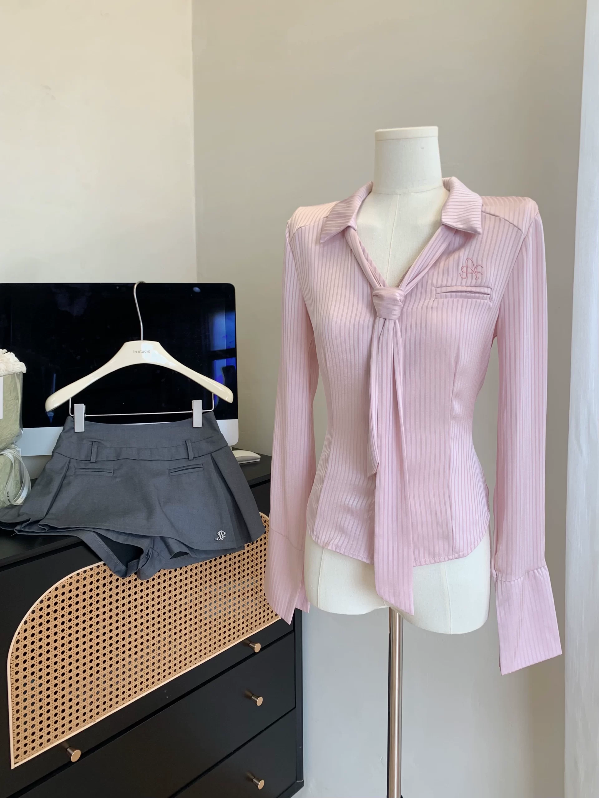 | nameOriginal | Silky Tie Striped Long Sleeve Sweet Girl Half Body Satin |
