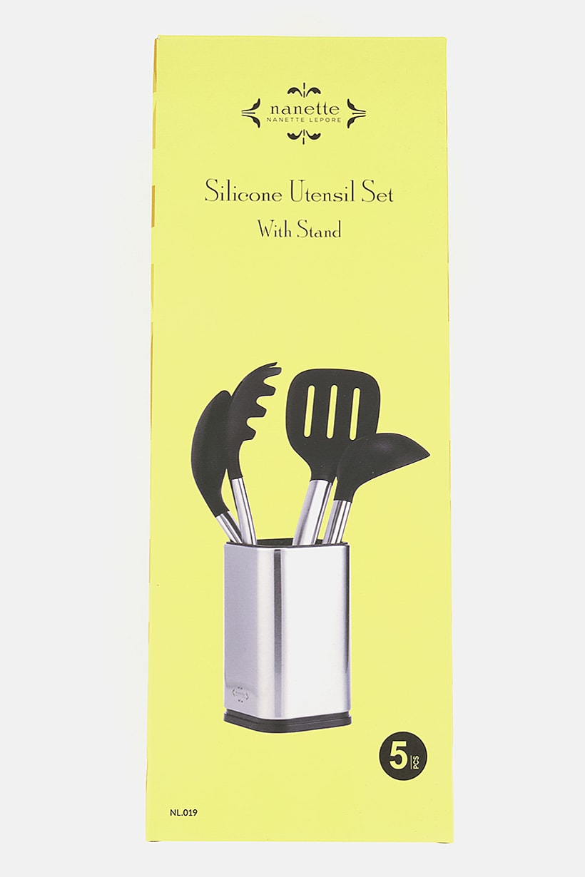 | nameOriginal | 5 Piece Silicon Utensil Set, Silver and Black |