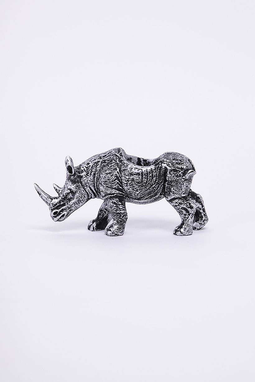 | nameOriginal | Rhinoceros Porta Candle Holder, Silver and Black |