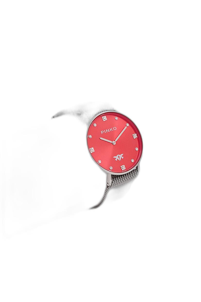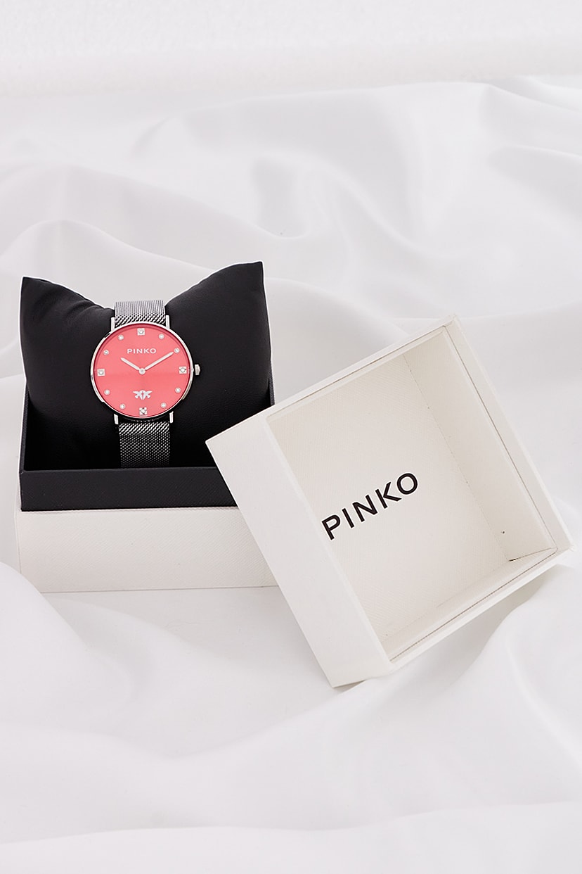 This watch features a round dial with a glass window and marker display. It is an ideal gift for women and has a silver stainless steel strap with a deployment clasp closure. The analog watch comes in a beautiful pink color that belongs to the pink color family.