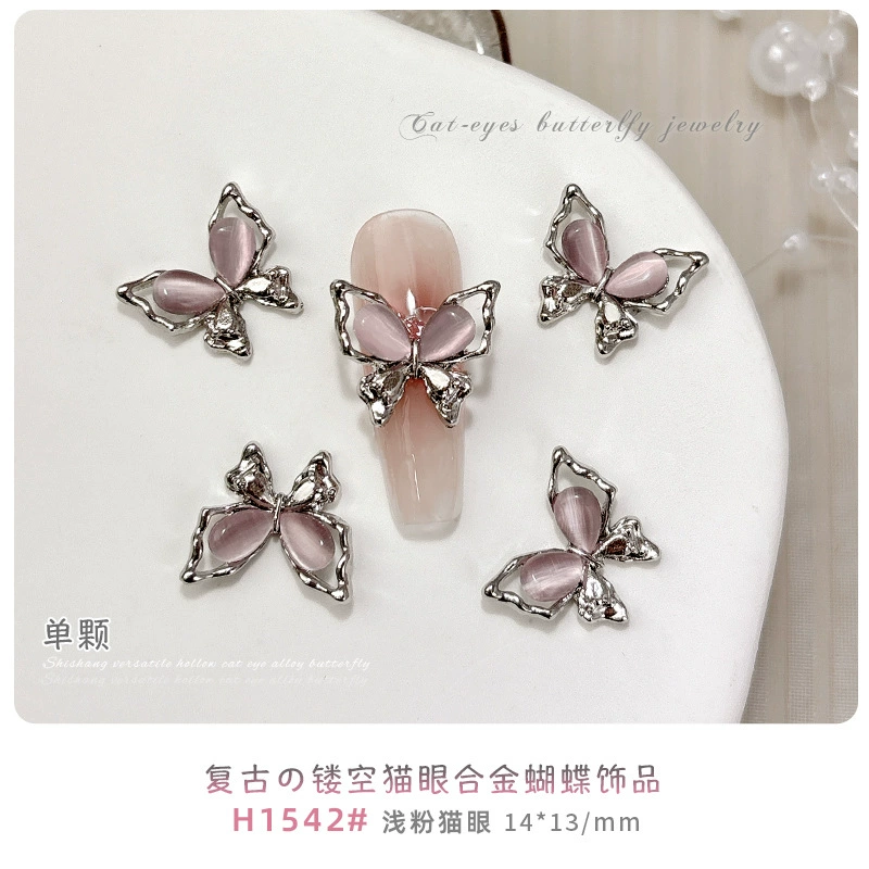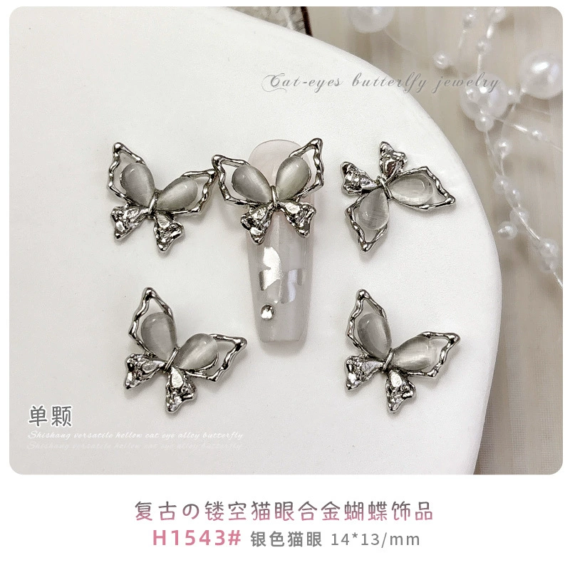 Silver Cat Eye Butterfly Nail Art Accessories New Three-dimensional Hollow Alloy Diamond Internet Celebrity Popular Wearable Nails Big Diamond