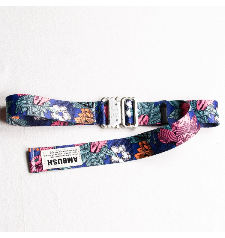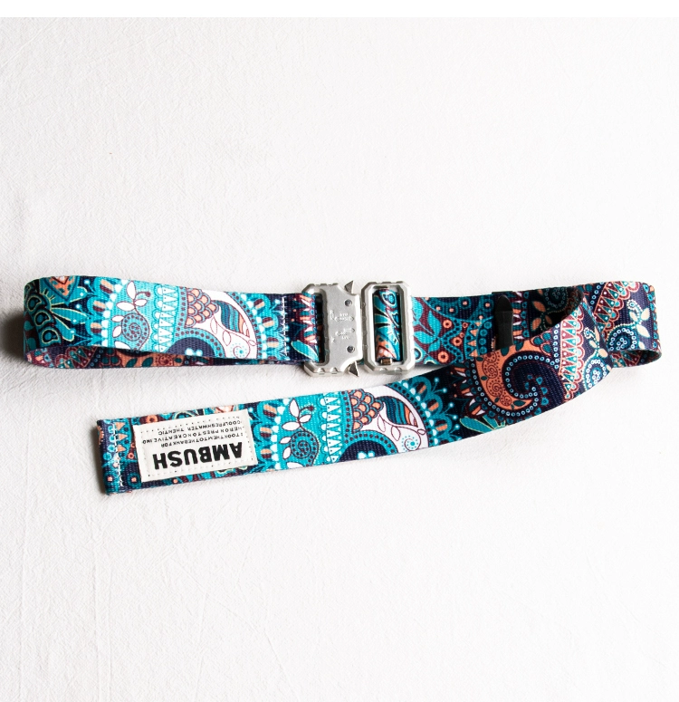 Silver cobra buckle canvas belt trendy printed overalls buckle ins cashew flower belt for young people