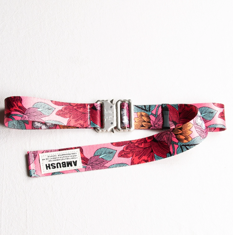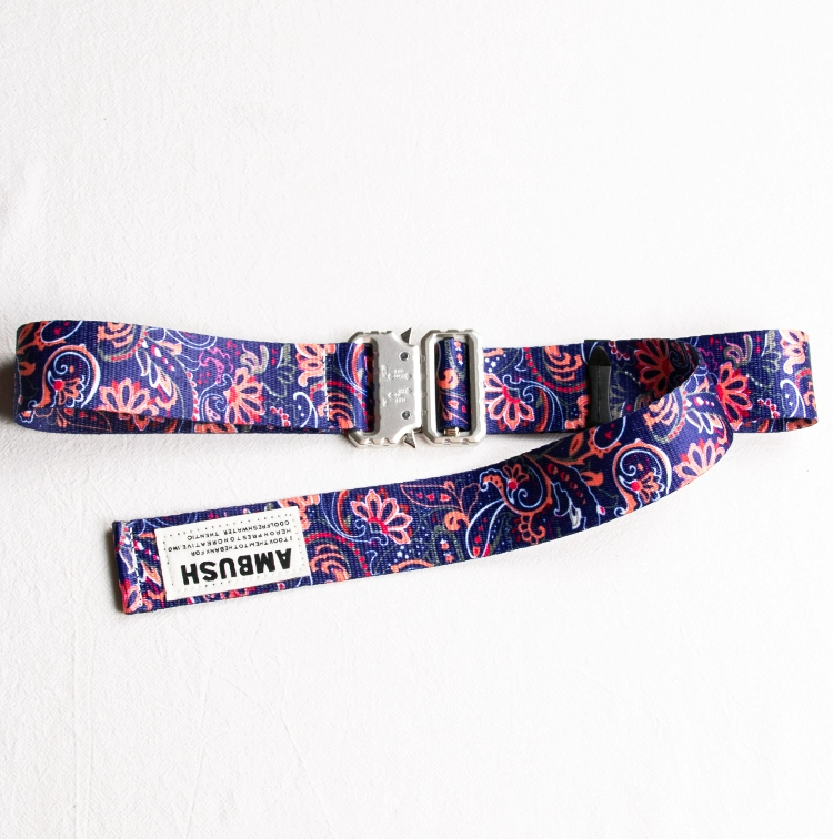 Silver cobra buckle canvas belt, trendy printed work pants, buckle ins cashew flower belt, young man
