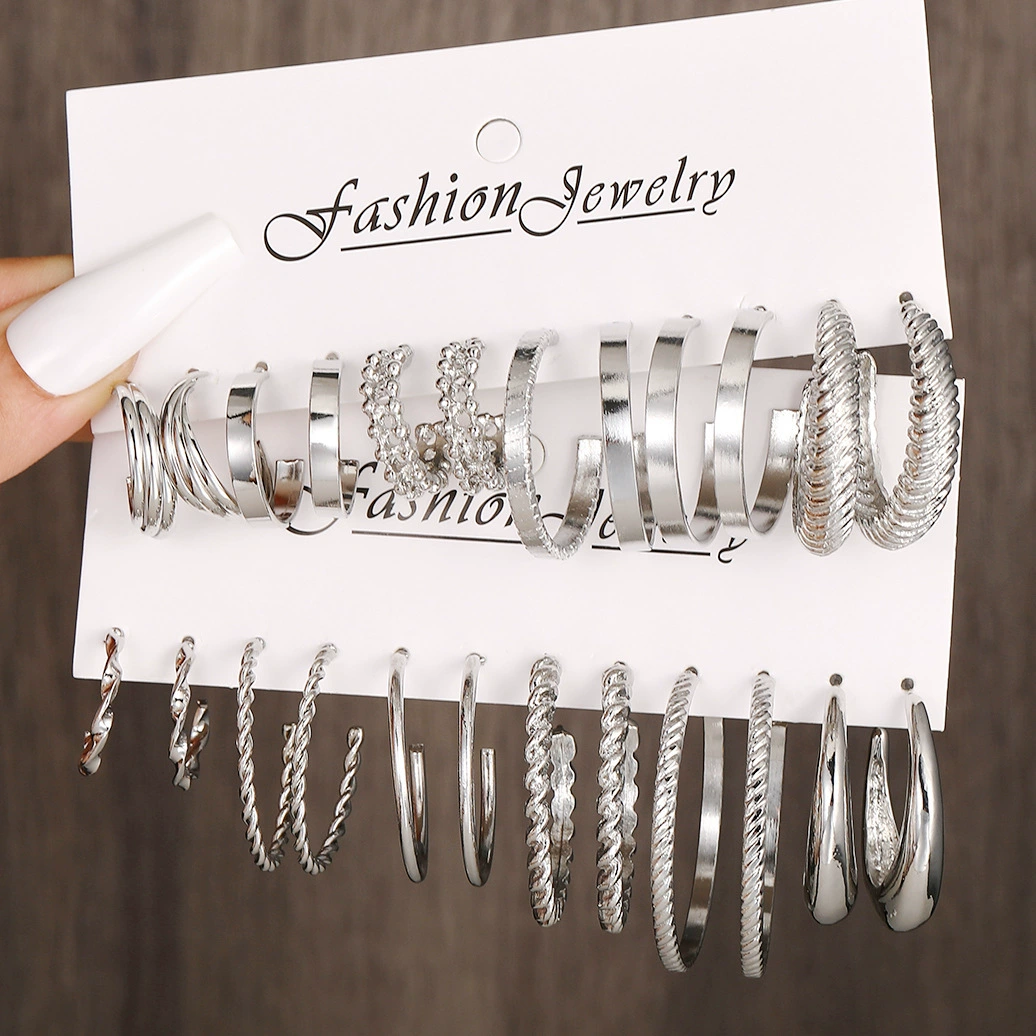 Silver earrings set 12 pieces silver metal pearl earring set set 12 piece set