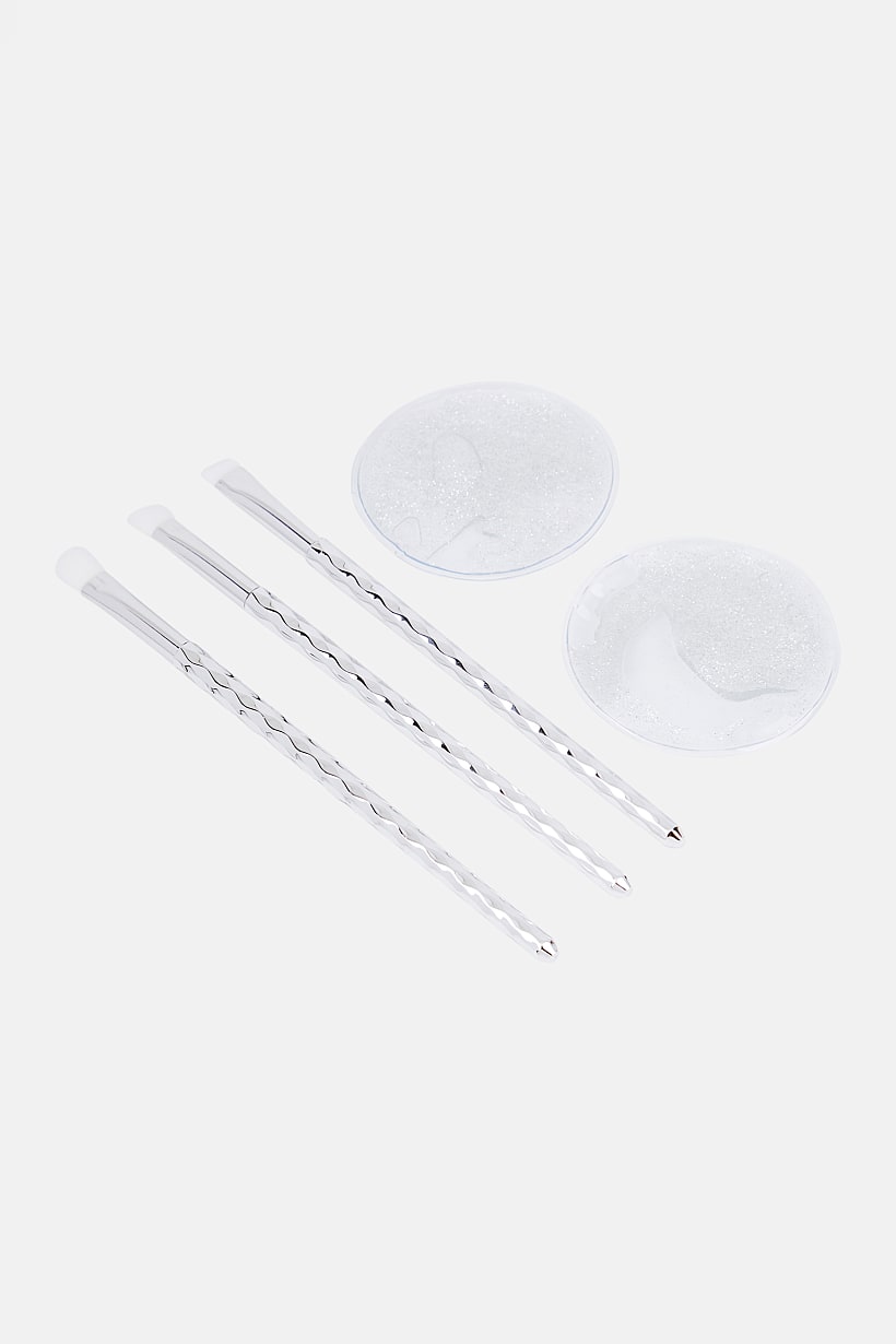 5 Pieces Brush And Gel Eye Pads Set, Silver