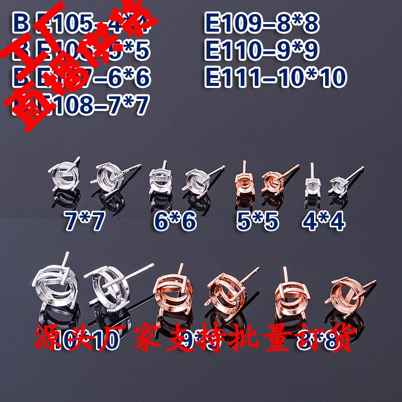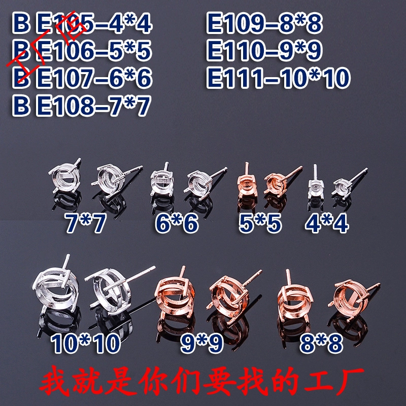 Silver gold-plated four-prong hollow support processing gemstone earrings