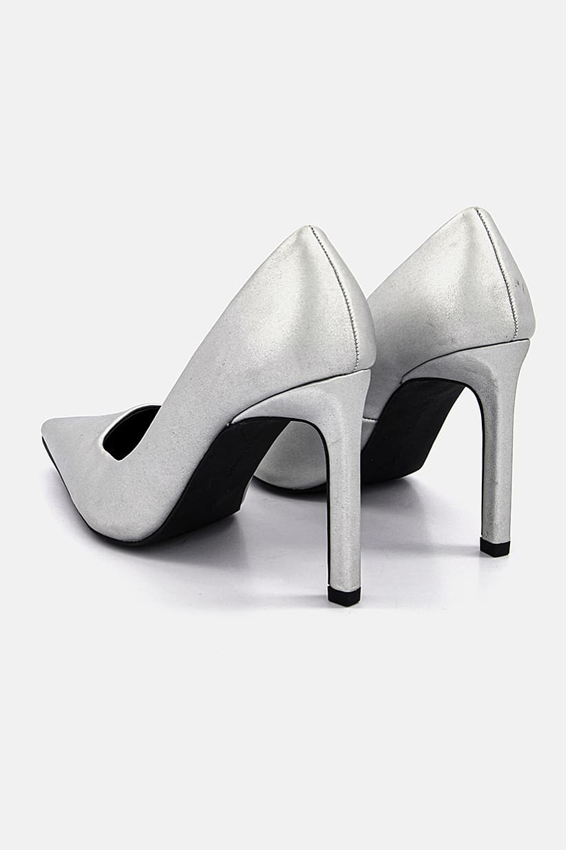 | descriptionOriginal | Heel Height : 4" / 10 cm, Heel Style : Stiletto heel, Ideal For : Women, Shoe Closure : Slip on, Shoe Width : Standard, Sole Material : Synthetic sole, Toe Style : Pointed toe, Disclaimer : Product color may slightly vary due to photographic lighting sources or your monitor settings., Box not included, Occasion : Casual, Shoe Material : Synthetic Leather, Color Family : Silver, |