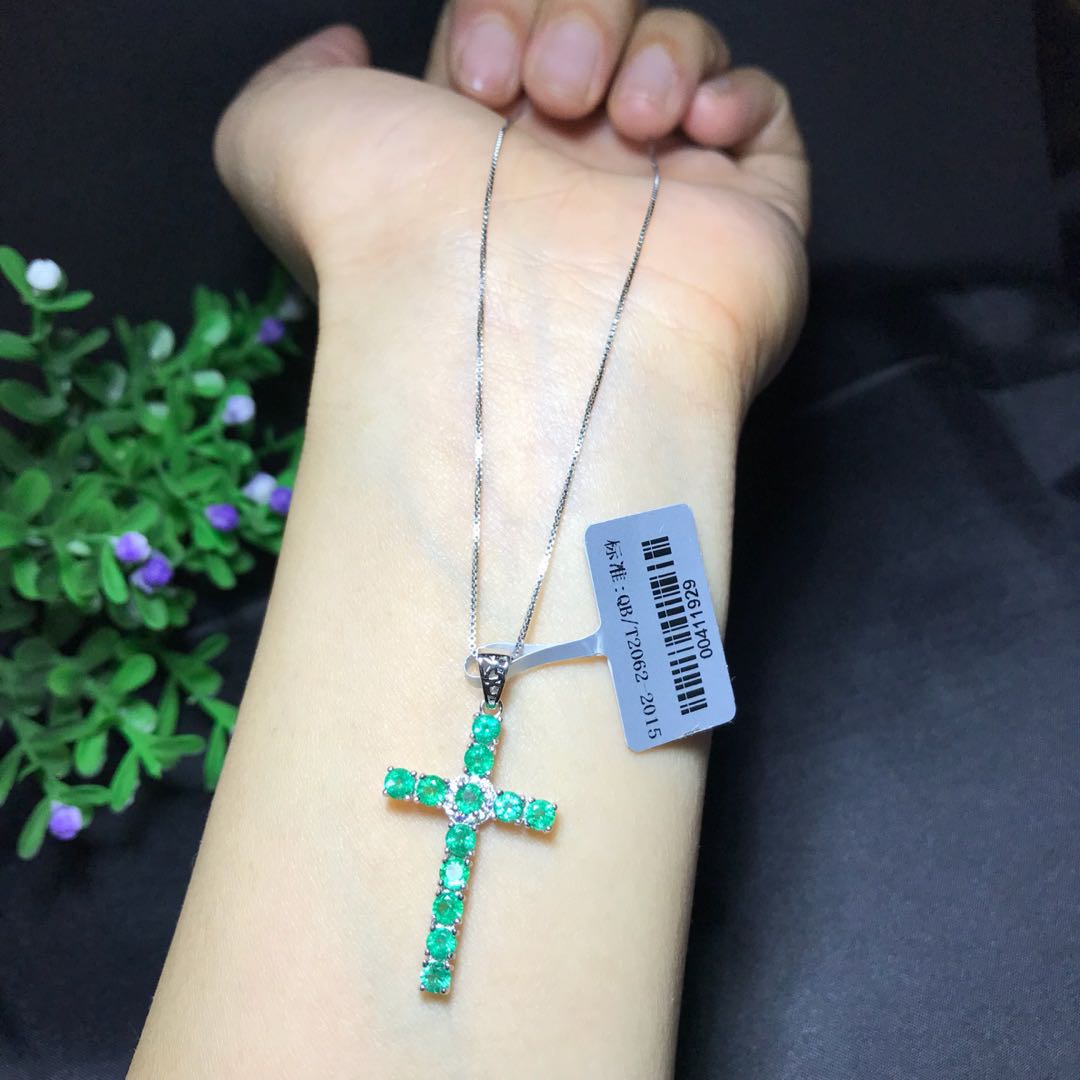 | nameOriginal | Silver inlaid natural emerald pendant, main stone size round 3 cross pendant heart of charity |