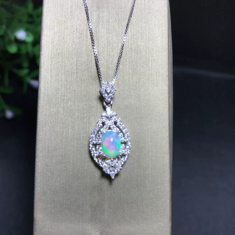 | nameOriginal | Silver inlaid natural opal pendant, main stone size 5*7MM, brilliant fire color |