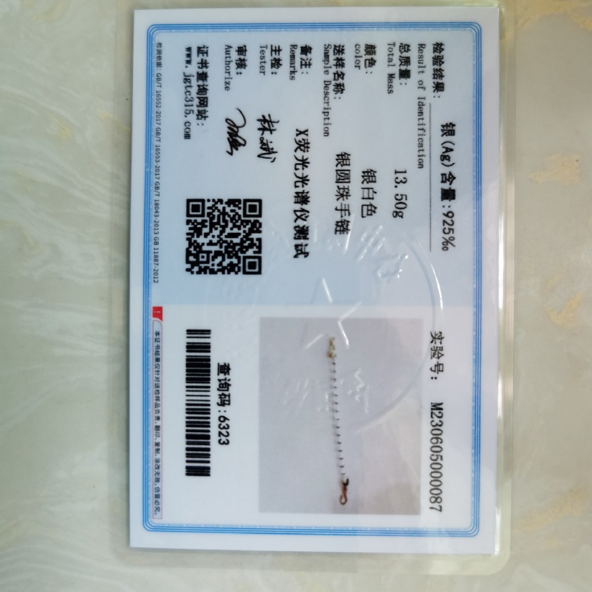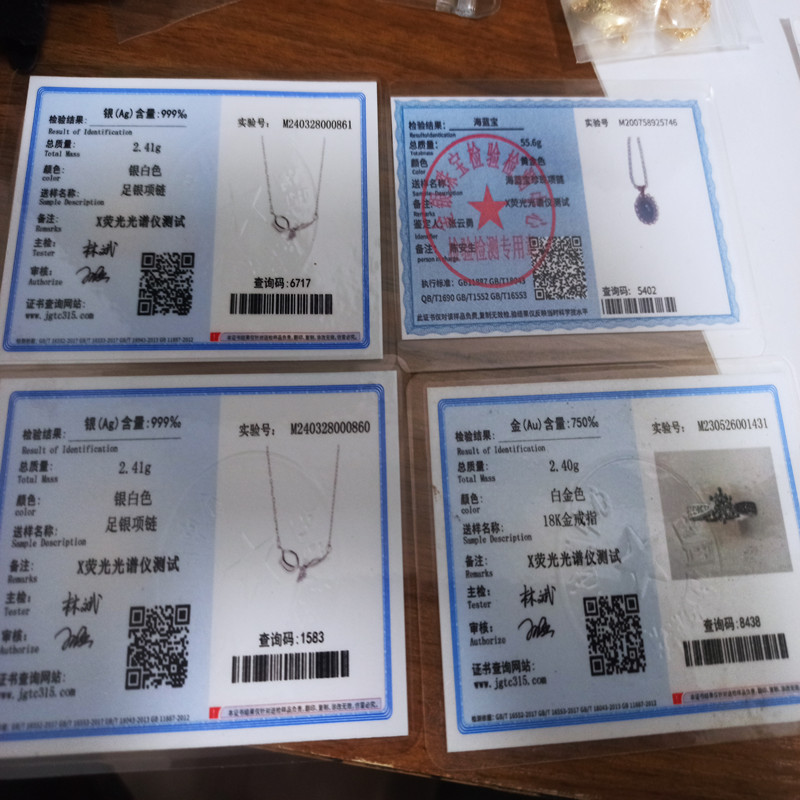 Silver jewelry identification certificate s925s990 sterling silver necklace earring bracelet ring precious metal test certificate is not refundable