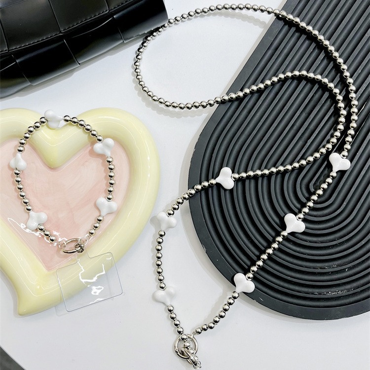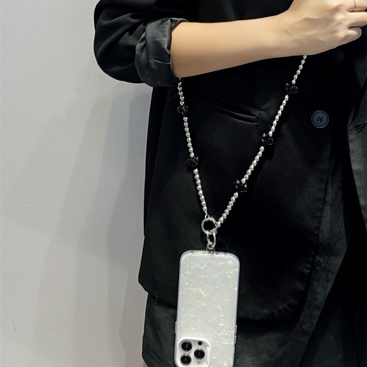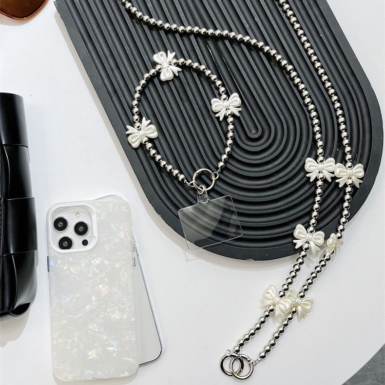 | nameOriginal | silver Love Bow Mobile Phone Case Crossbody Chain Lanyard Halter Electroplated Beaded Chain Long and Short Portable with Back |