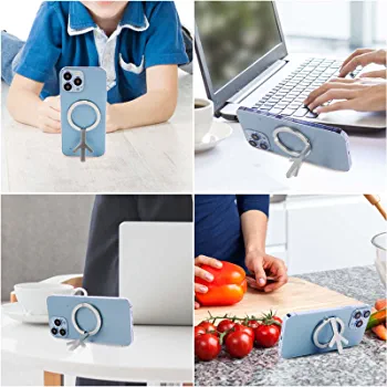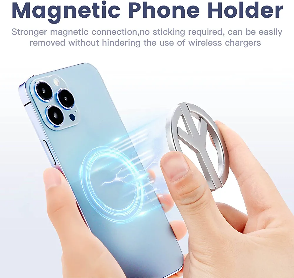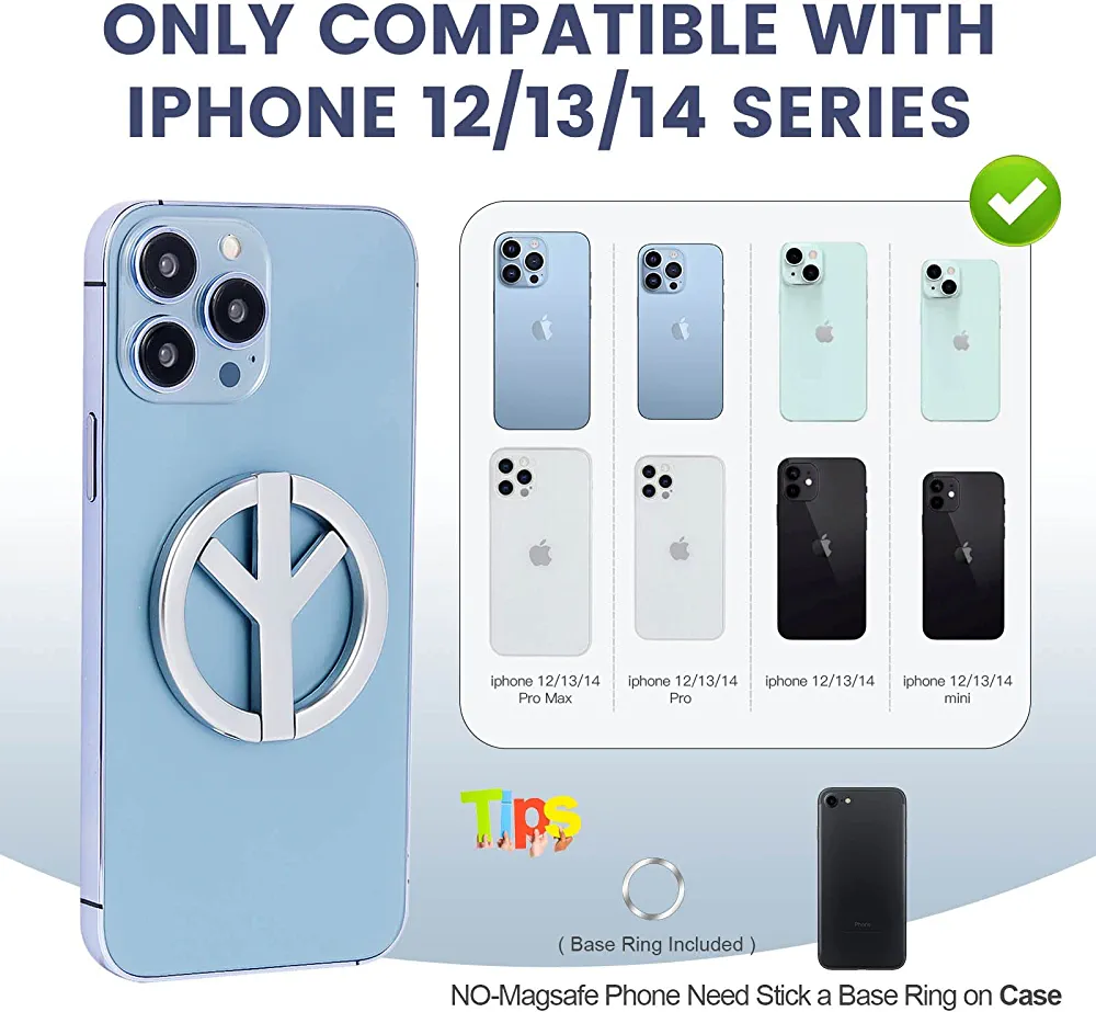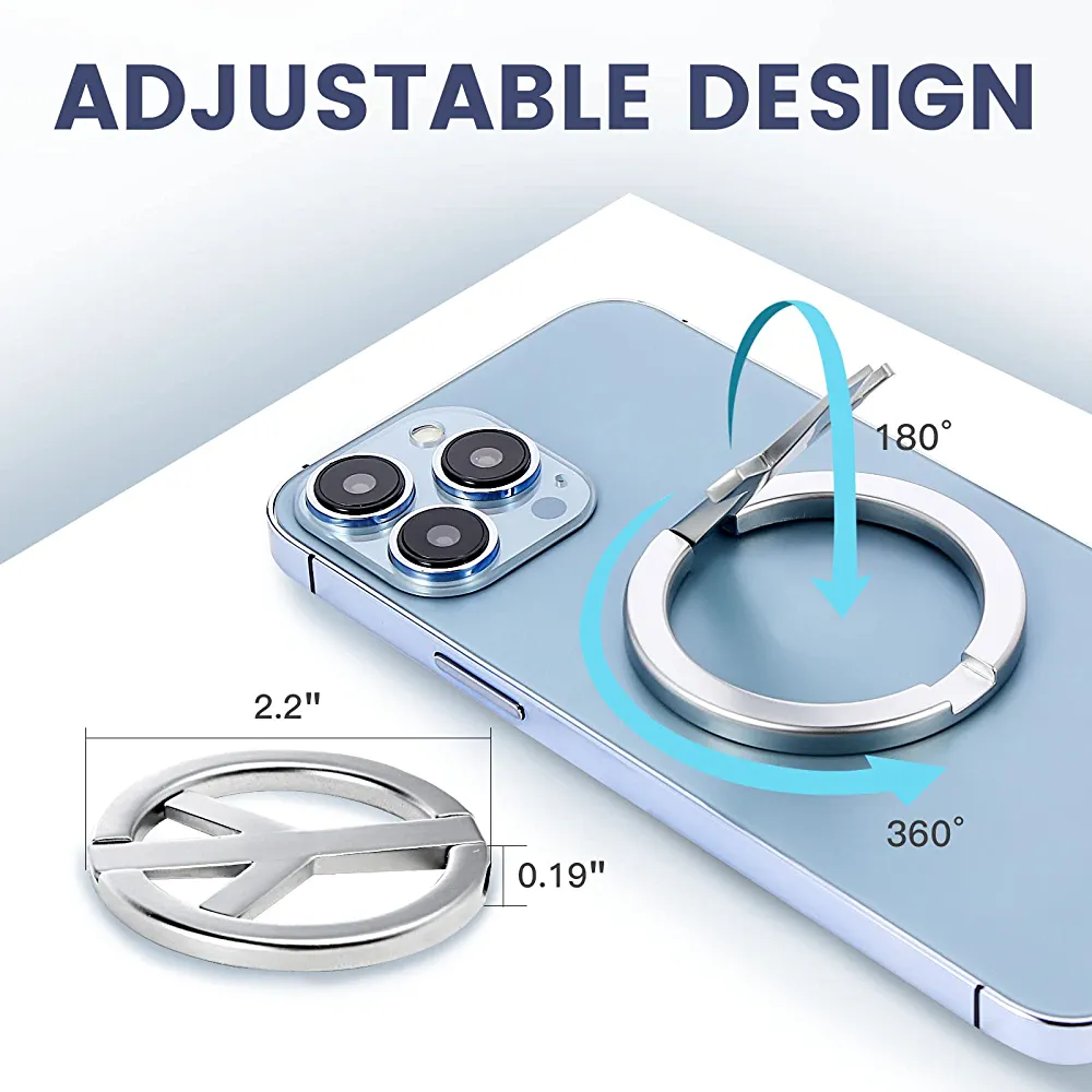 Designed specifically for the iPhone 12/13/14 series, this magnetic phone stand is compatible with MagSafe accessories, ensuring a seamless and effortless user experience. The sleek silver finish adds a touch of elegance to your phone, while the durable construction ensures long-lasting use.