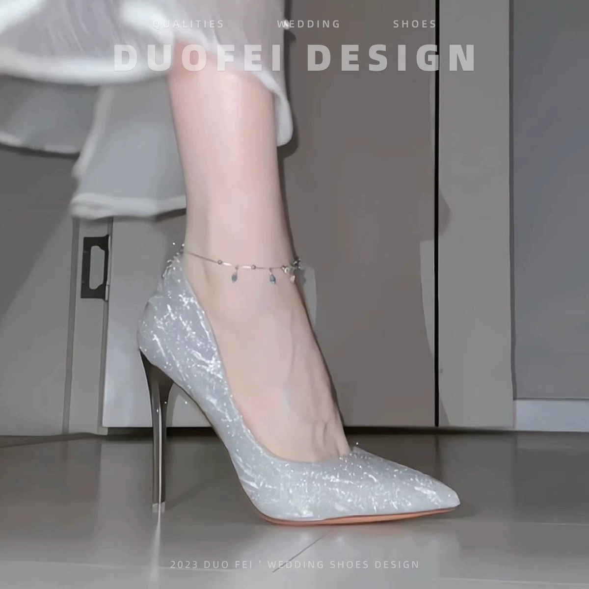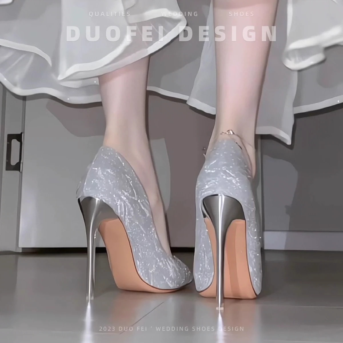 | nameOriginal | Silver main wedding dress crystal large size high heels |