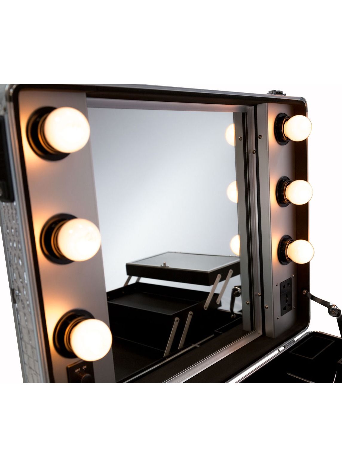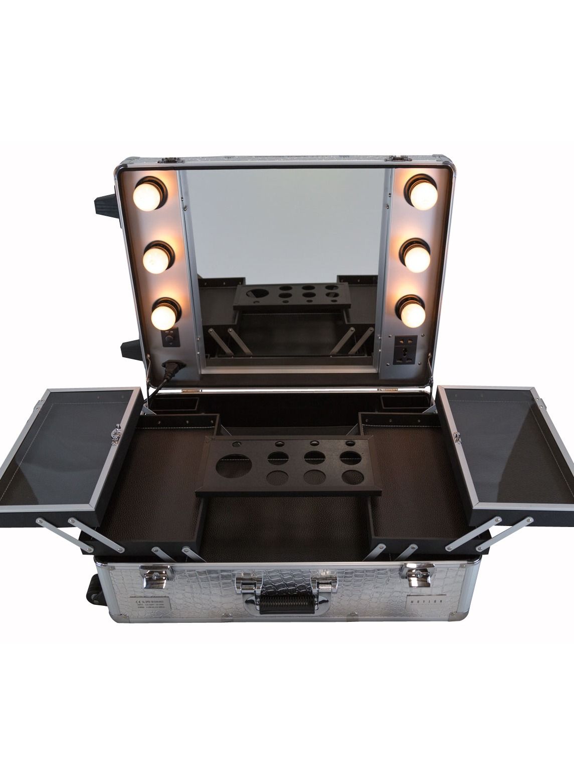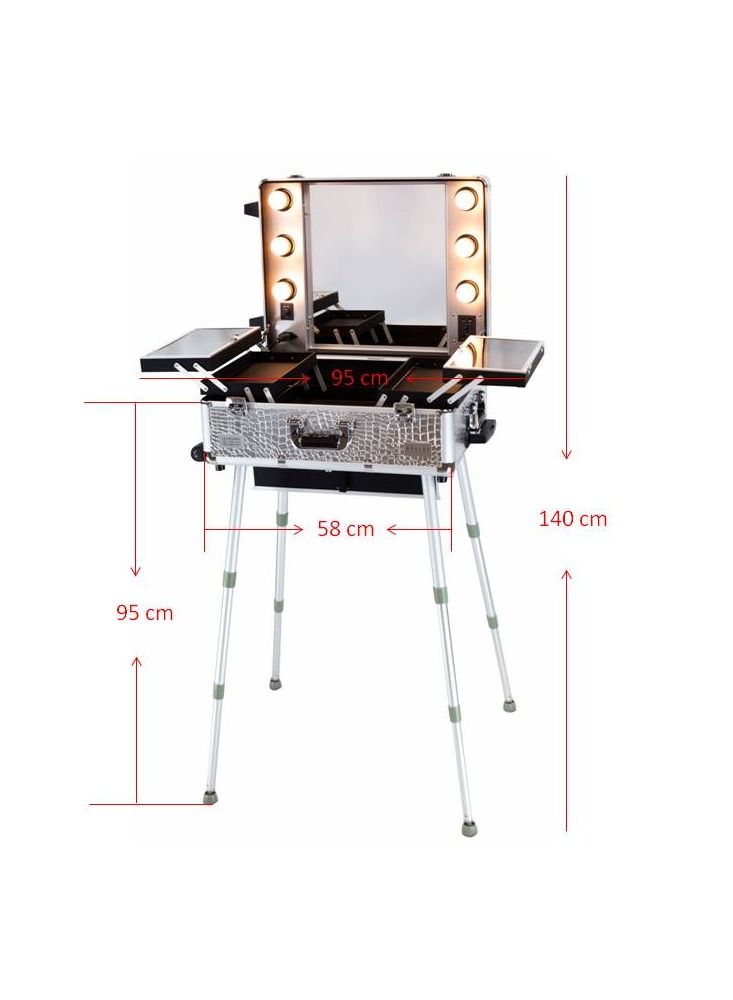 Crafted from high-quality materials, this makeup case is built to last and withstand the rigors of daily use. The sleek silver finish adds a touch of elegance and sophistication to your workspace, while the compact size makes it easy to store and transport. Whether you’re a professional makeup artist or simply looking for a convenient and stylish way to organize your beauty essentials, the Maylan Makeup Train Stand Case with Pro Studio Artist Trolley and Lights is the perfect choice.