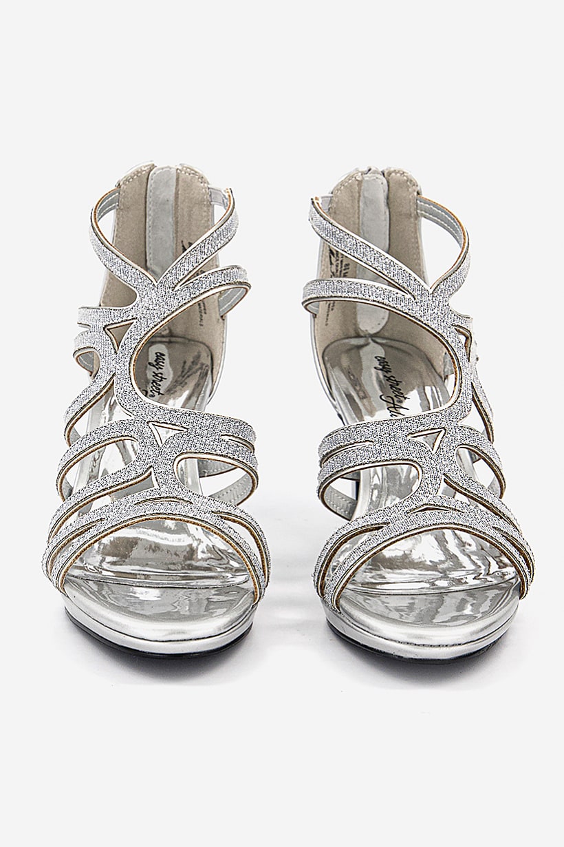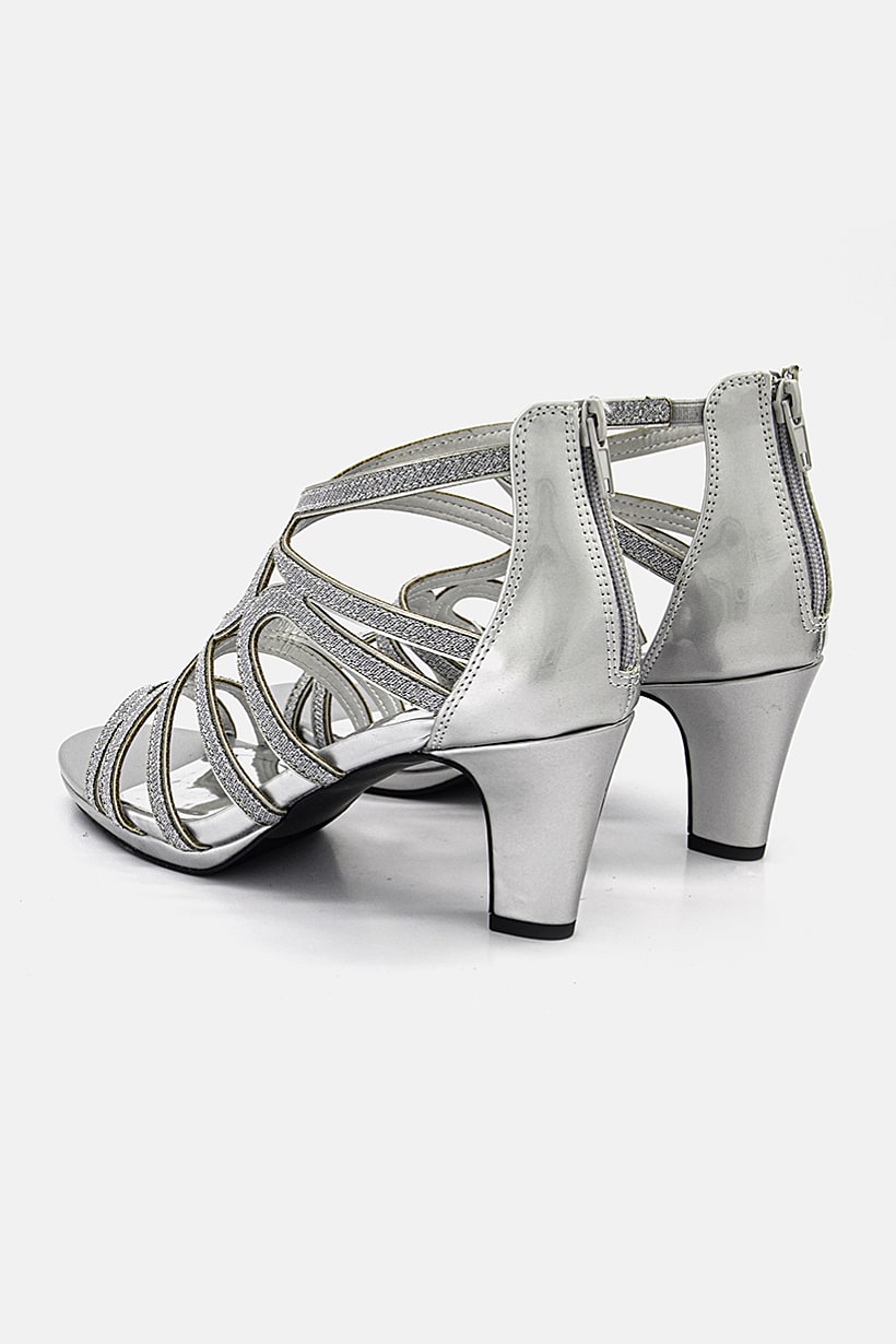Silver Metallic High Heel Sandals with Zipper for Women.