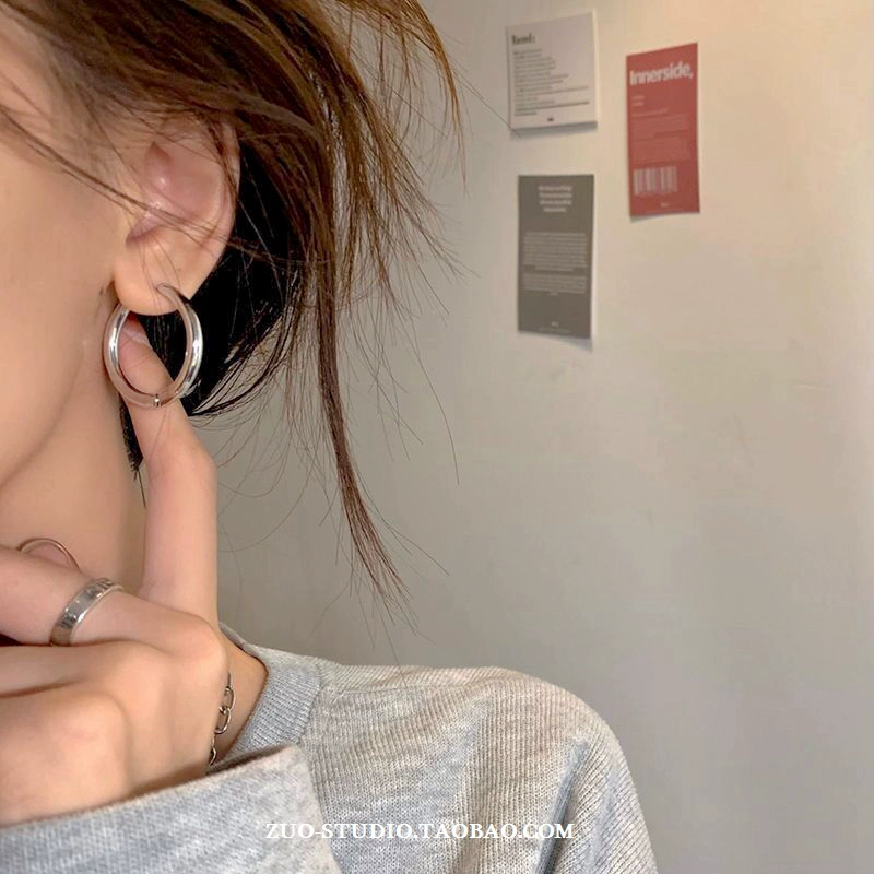 | nameOriginal | Silver plain hoop earrings niche design high-end earrings for women 2023 new trendy hoop earrings |