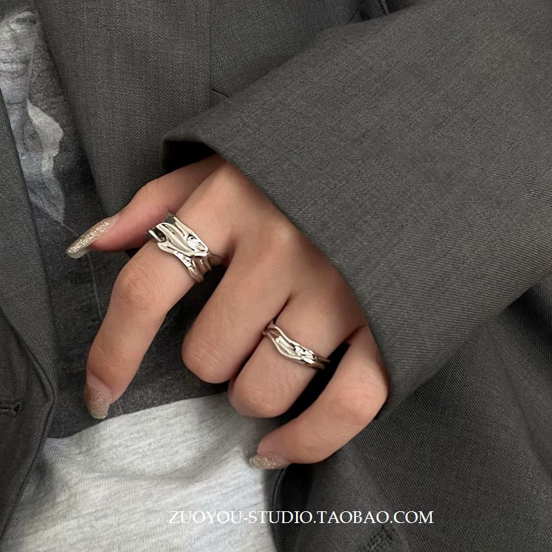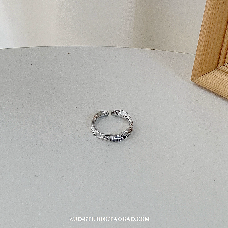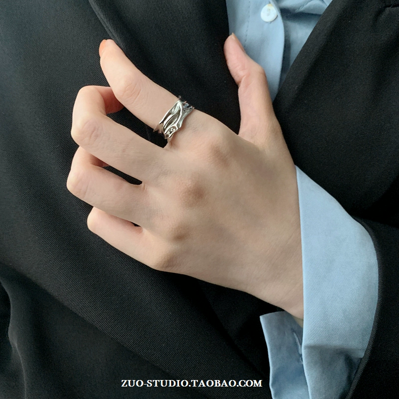 | nameOriginal | Silver plain ring women's niche design pleated index finger ring cold style open pair ring ins high-end ring |