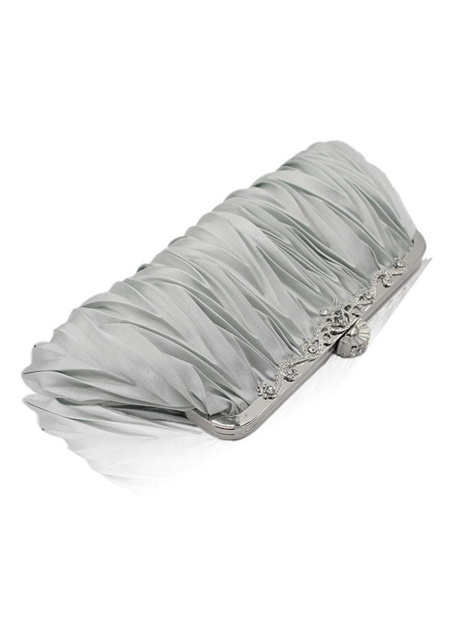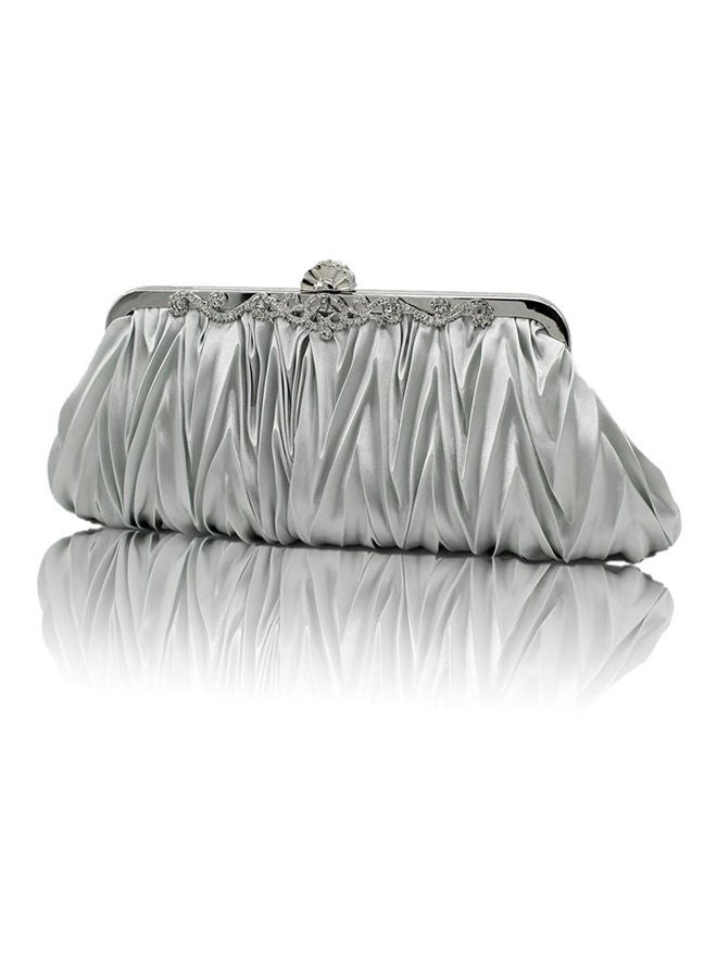 | nameOriginal | Satin Ruffle Clutch Silver |
