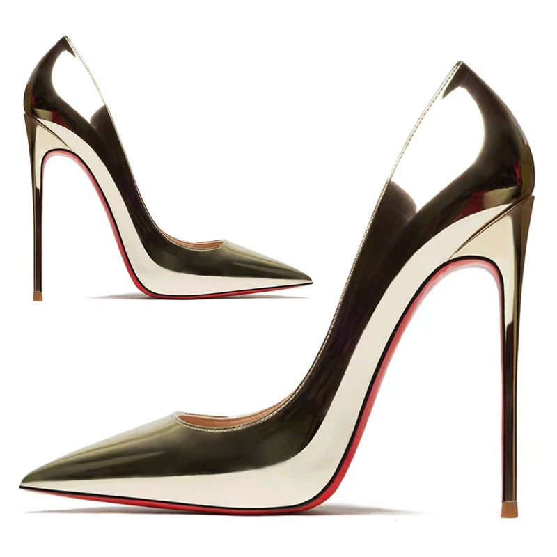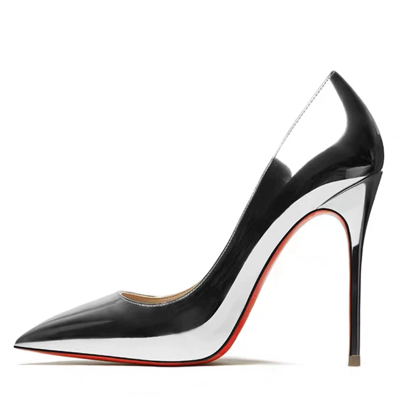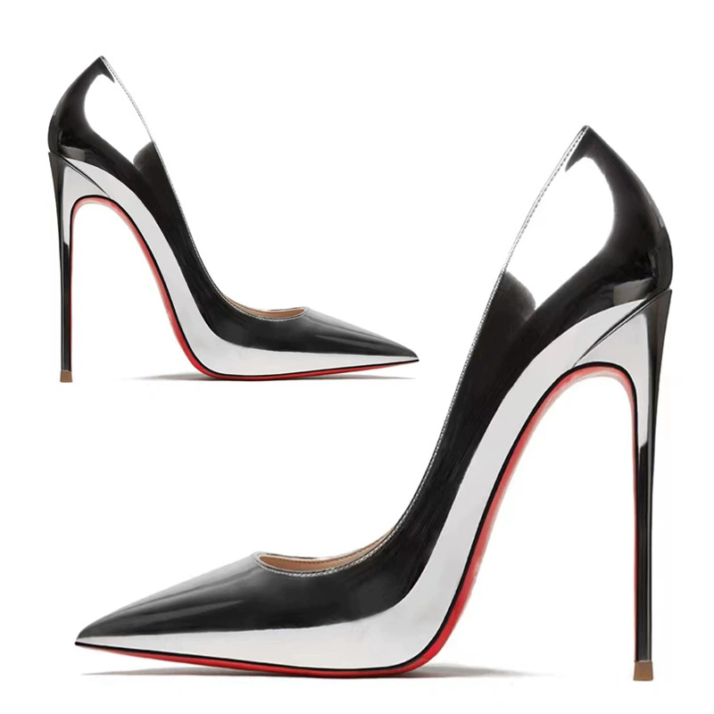 | nameOriginal | Silver shallow mouth pointed toe large size red sole high heels |