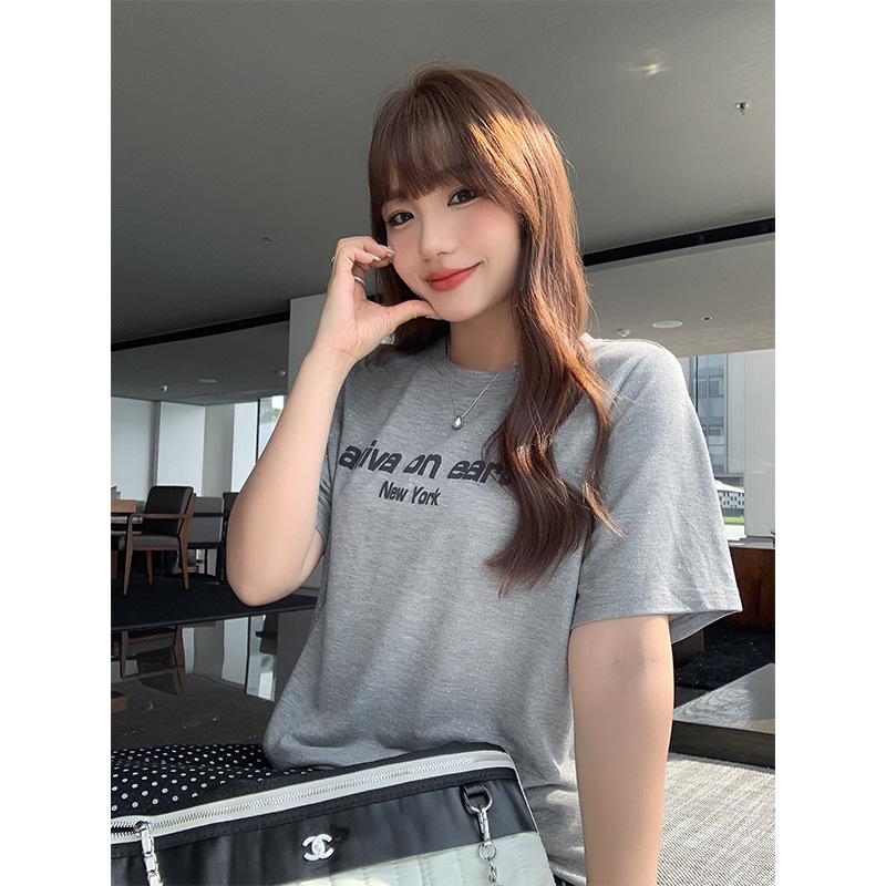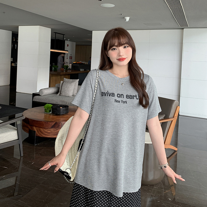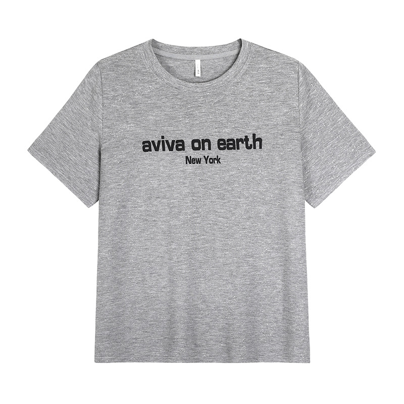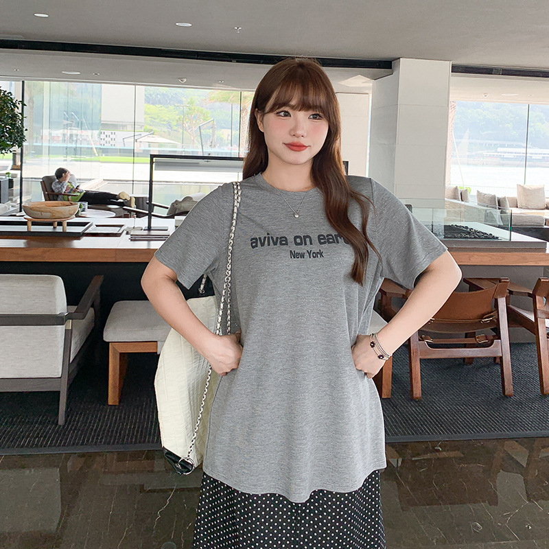 | nameOriginal | Silver Shine Loose Large-size Round Neck T-shirt Women's plus size chubby girl Letter Printed Shoulder Short-sleeved Top 63291 |