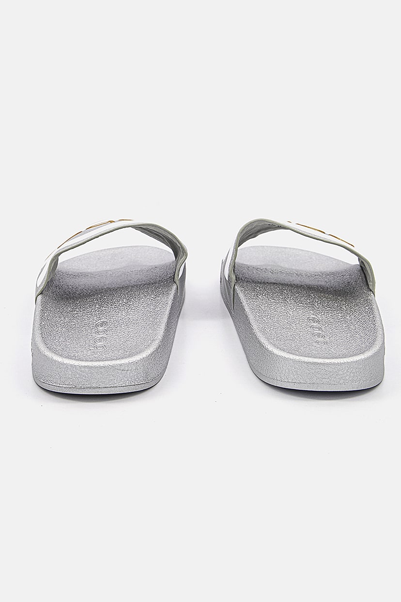 Silver Slip-On Slippers for Women – Aniyah, Medium Size.