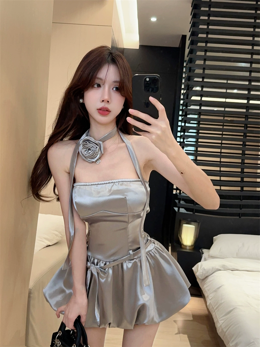| nameOriginal | Silver Summer Sexy Lace-Up A-Line Skirt Tube Top |