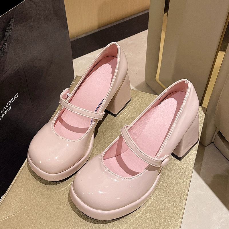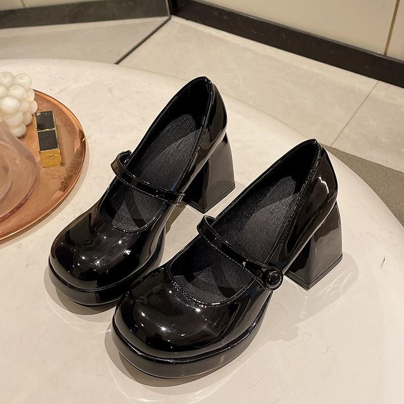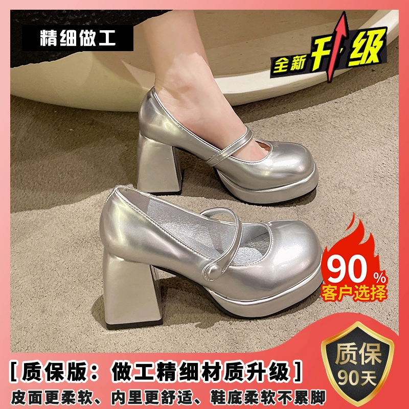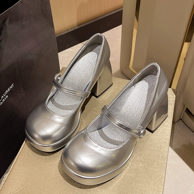 | nameOriginal | Silver thick heel, round toe and skirt French Mary Jane shoes |