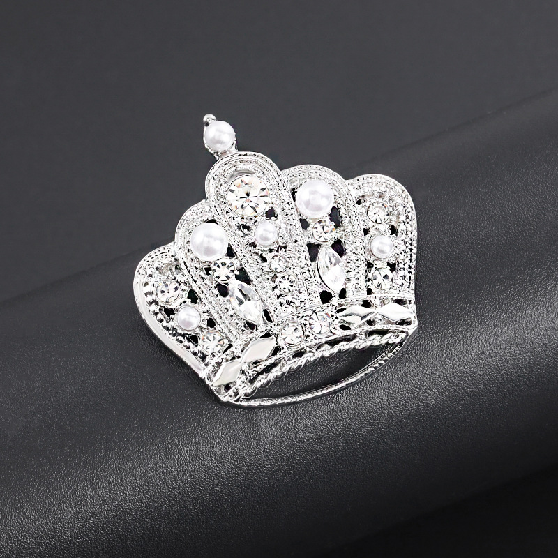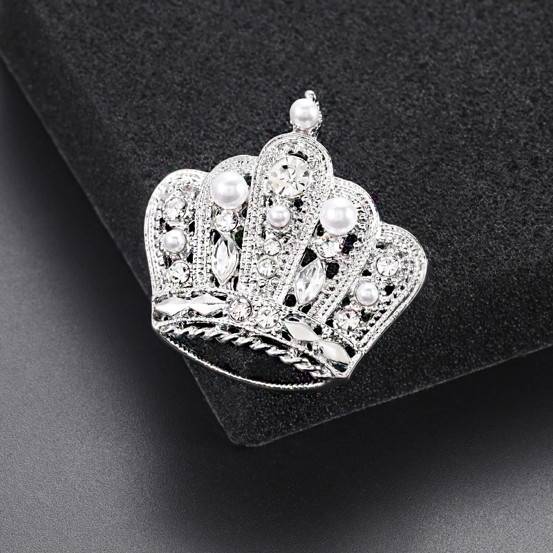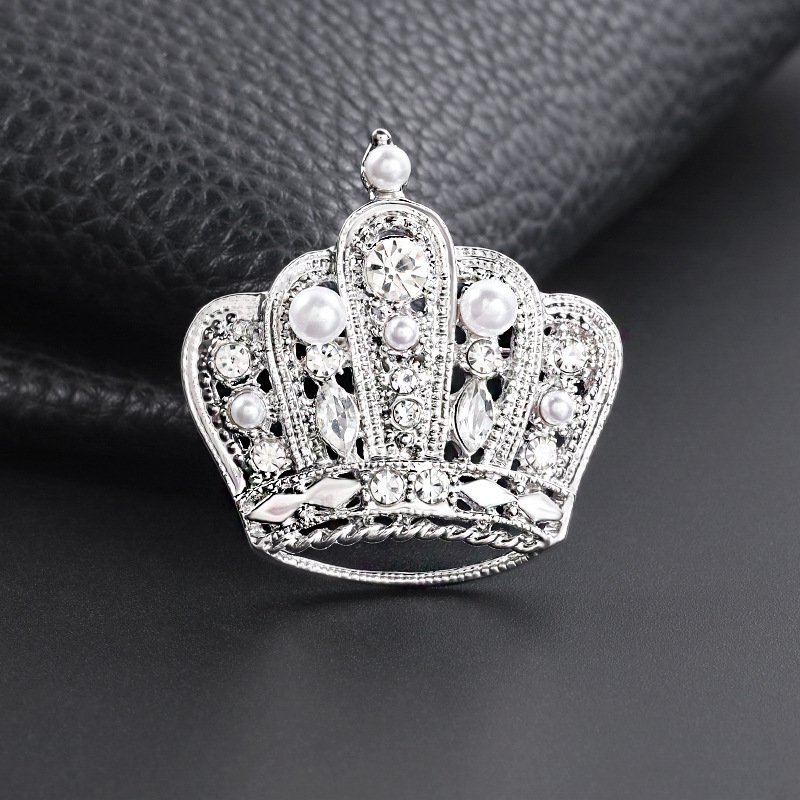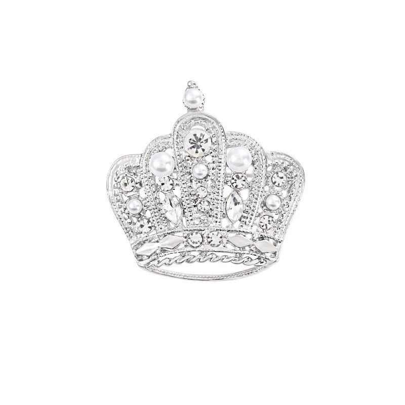 | nameOriginal | Silver white crown brooch high-end female corsage Pearl rhinestone accessories autumn and winter coat clothing fixed pin jewelry |