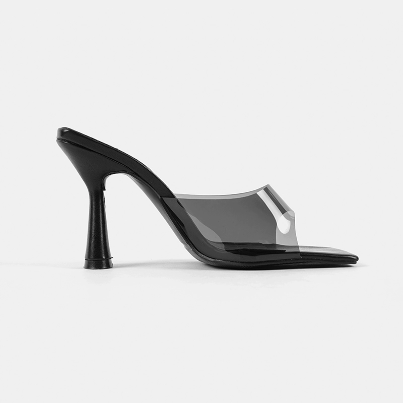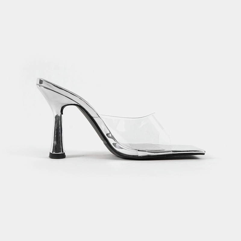 | nameOriginal | Silver women's square toe transparent sexy open toe high heels |