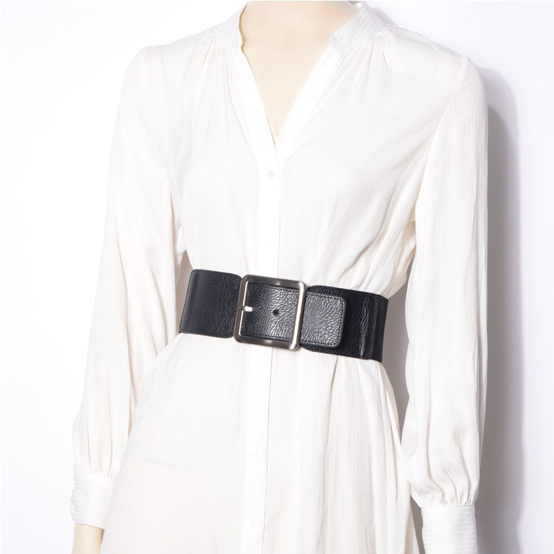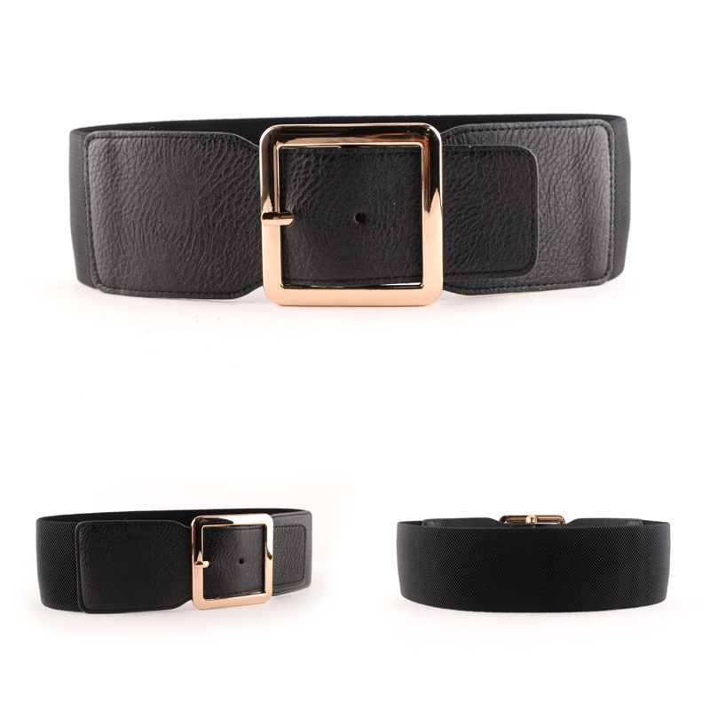 | nameOriginal | Simple All-match Metal Square Buckle Four Seasons Basic Women's Belted Waist Elasticated Leather PU Wide Waist Belt Black |