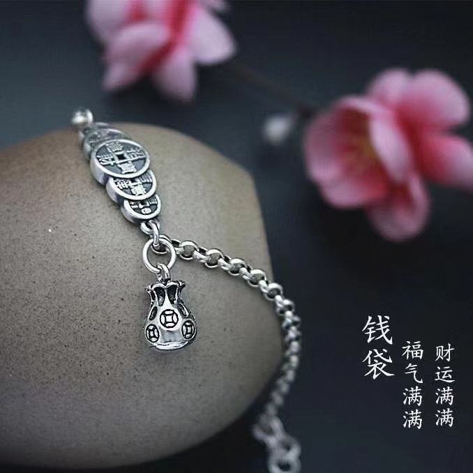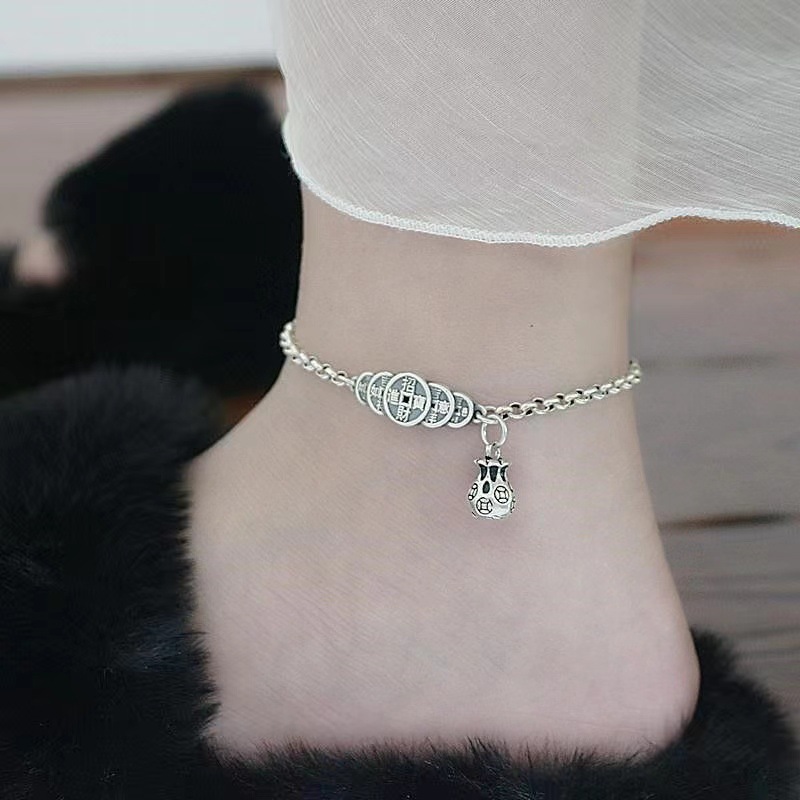 Simple and Fashionable Five Emperors Coin Foot Chain for Men and Women with Retro Ethnic Style Copper Coin Niche Design Creative Jewelry