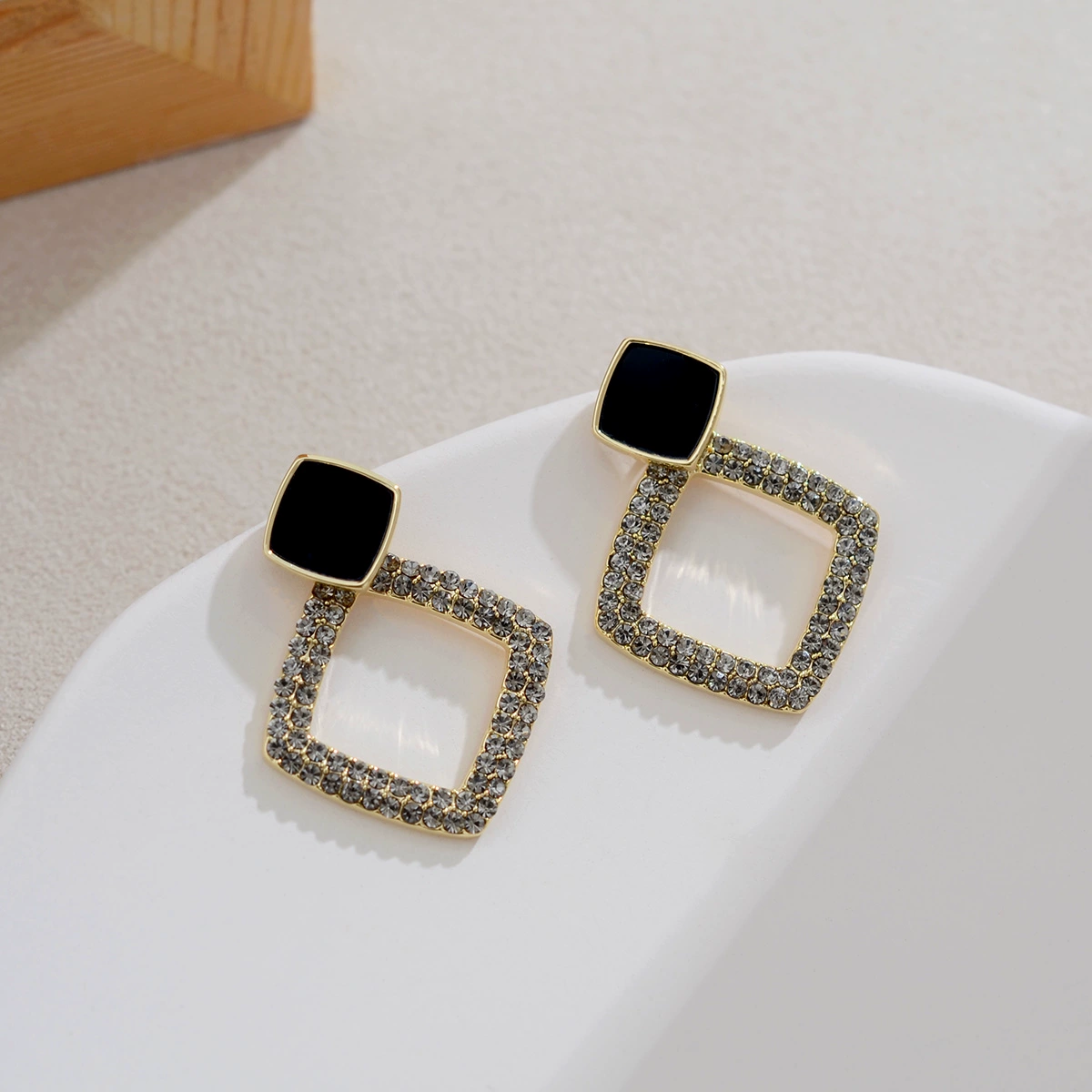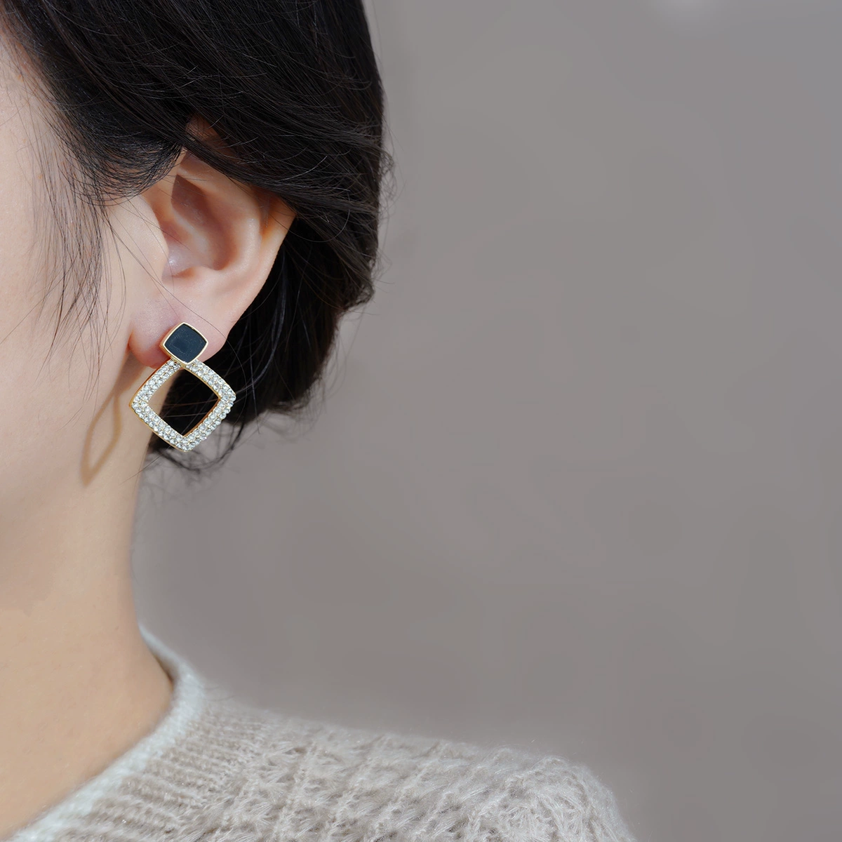 | nameOriginal | Simple and generous rhombus earrings, versatile spring earrings, high-end large hoop earrings with diamonds, retro French earrings for women |