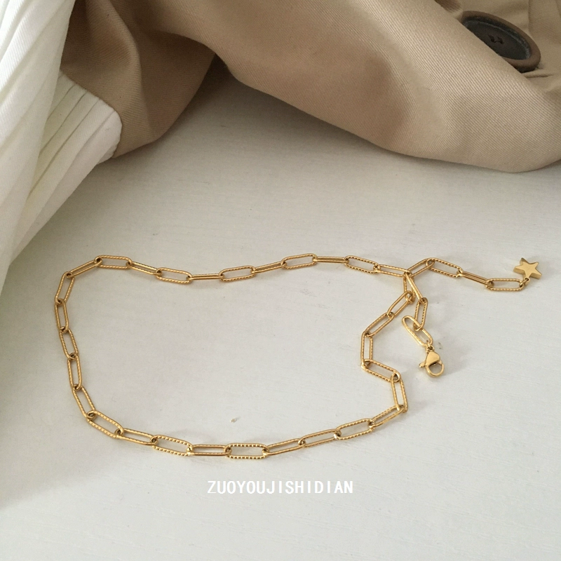 | nameOriginal | Simple and high-end fashion blogger 14K gold titanium steel necklace women's INS cool style non-fading chain short necklace |