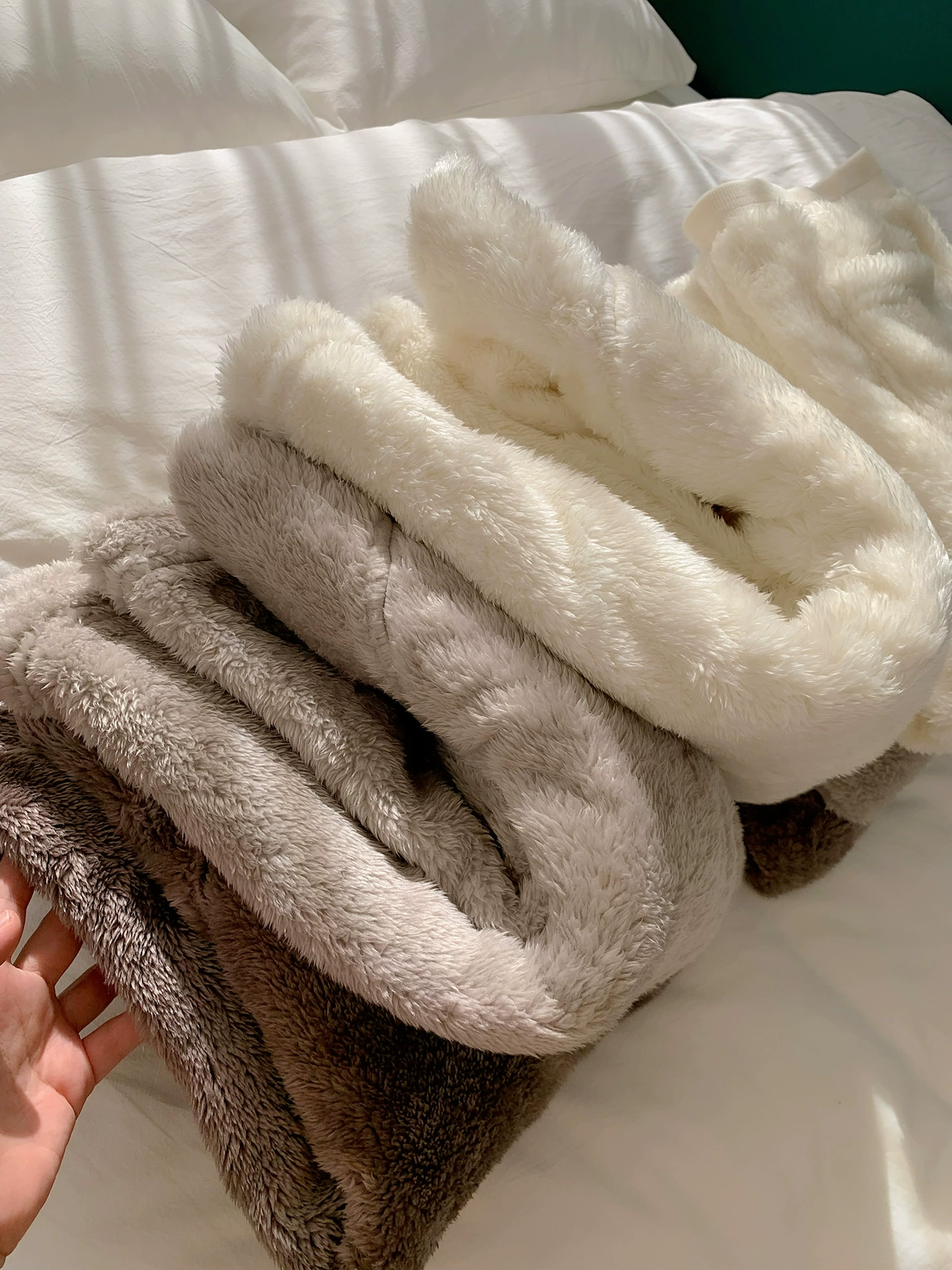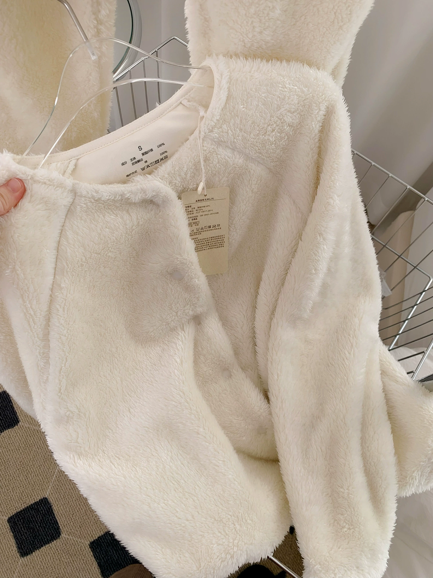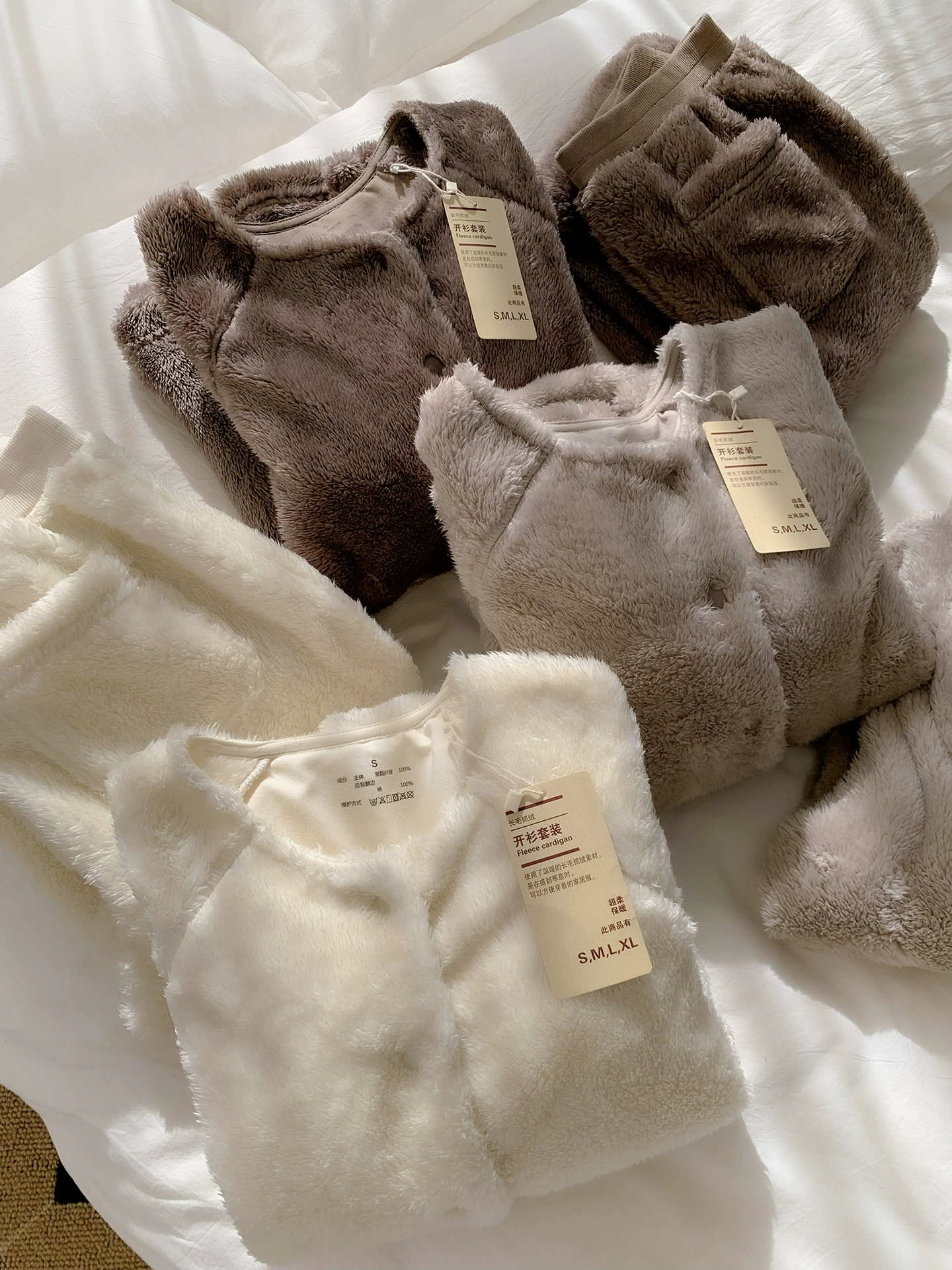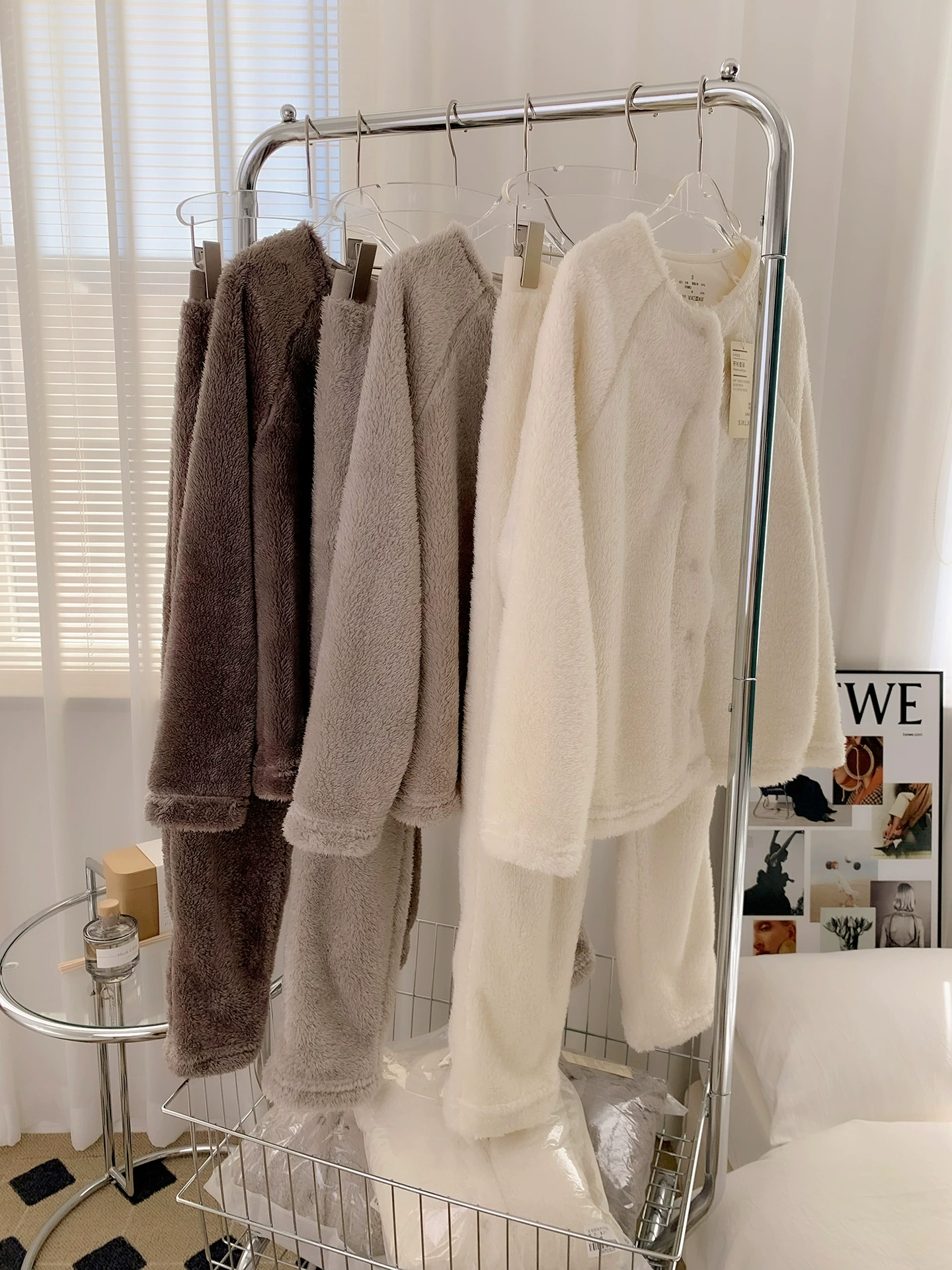 | nameOriginal | Simple and light luxury couple pajamas set for men and women plush material plus velvet thickened autumn and winter home clothes can be worn outside |
