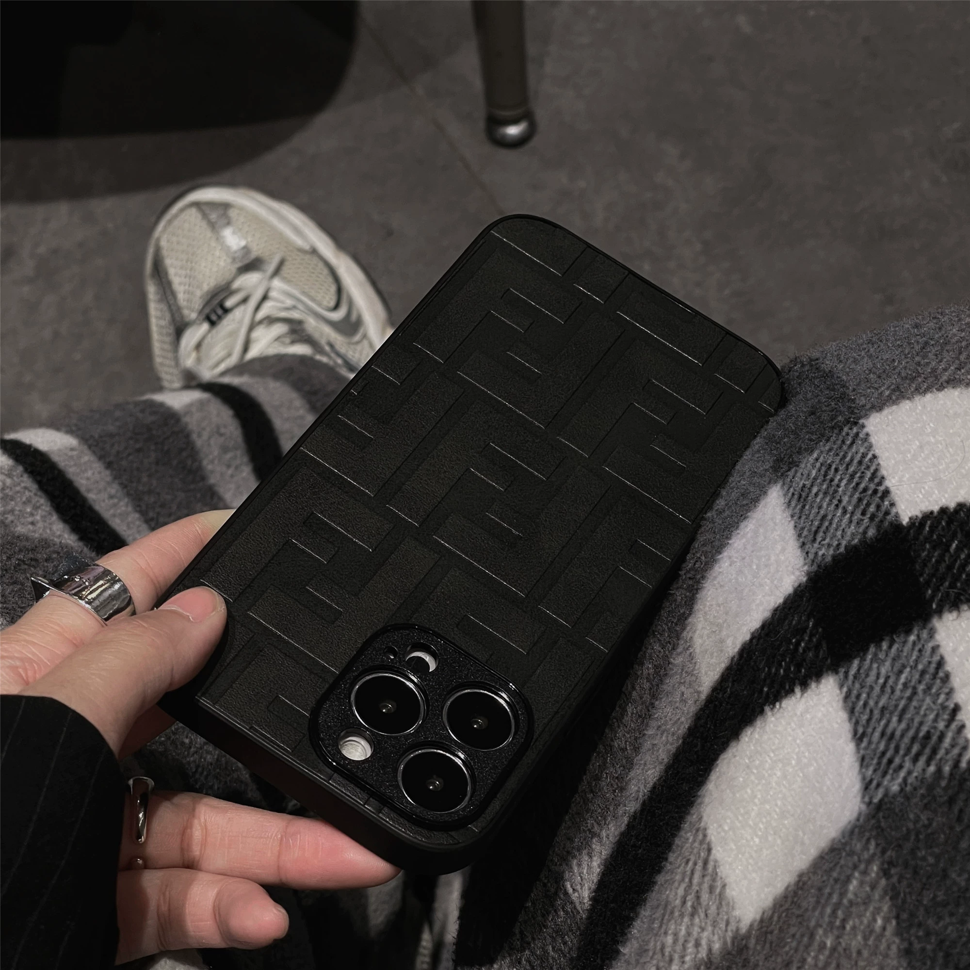 Simple and personalized embossed leather lens protective case Apple