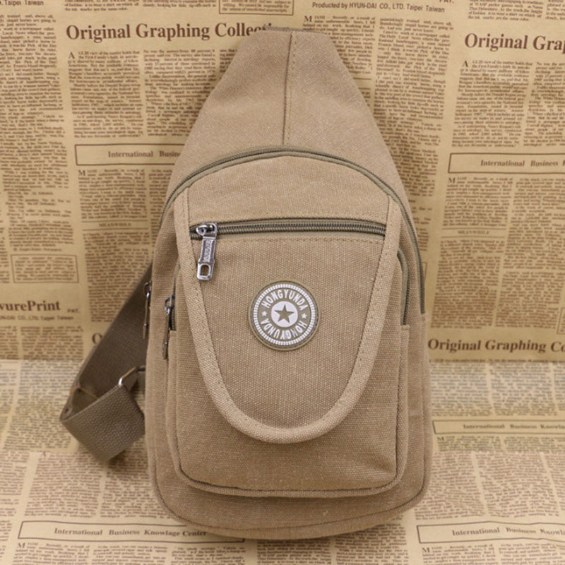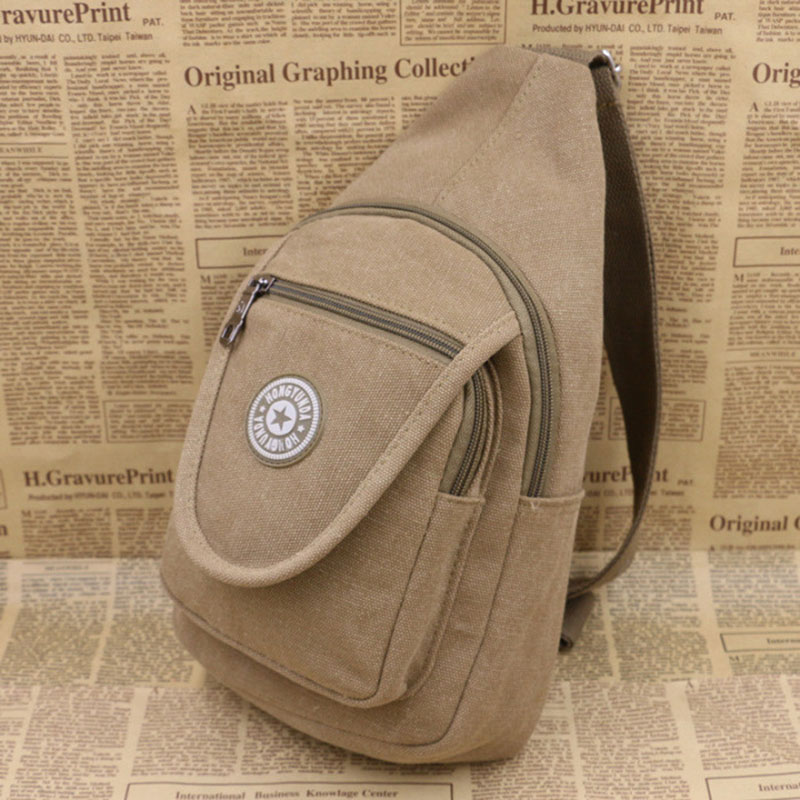Simple and practical portable men's solid wear-resistant canvas shoulder crossbody chest bag outdoor leisure sports riding work