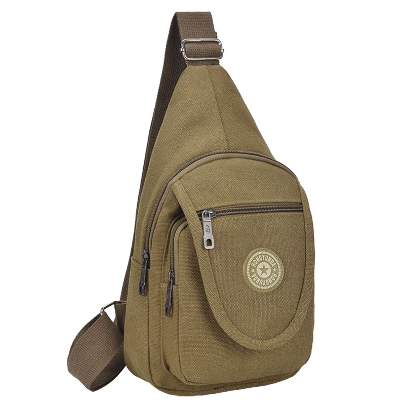 Simple and practical portable men’s solid wear-resistant canvas shoulder crossbody chest bag outdoor leisure sports riding work
