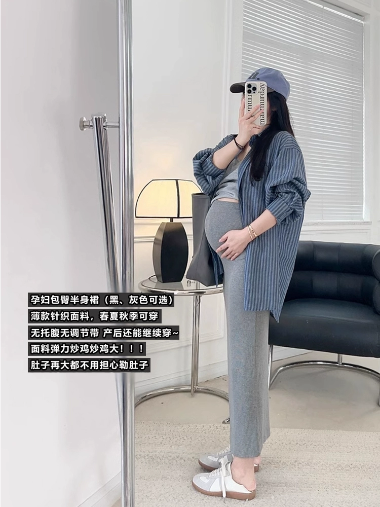 Simple and versatile ~ maternity skirt summer mid-length slim stretch straight hip-covering bottoming long skirt summer