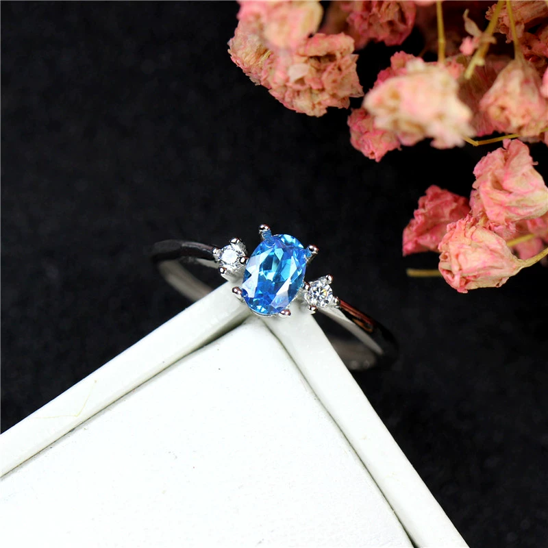 | nameOriginal | Simple aquamarine ring, small and versatile, chic girl gift, Japanese and Korean sterling silver, non-fading, adjustable mouth |