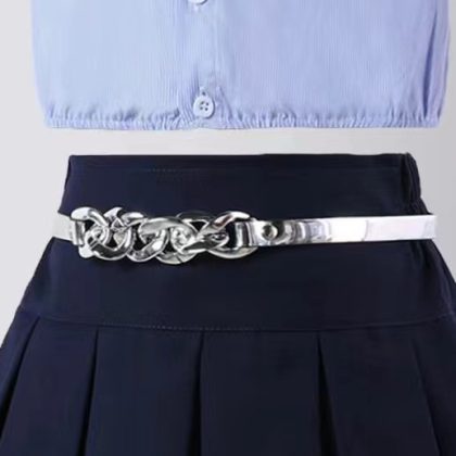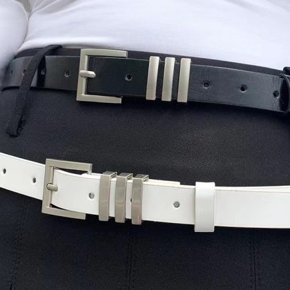 | nameOriginal | Simple Basic Niche Black and White Belt with Silver Buckle All-match Fashionable Belt for Boys and Girls |