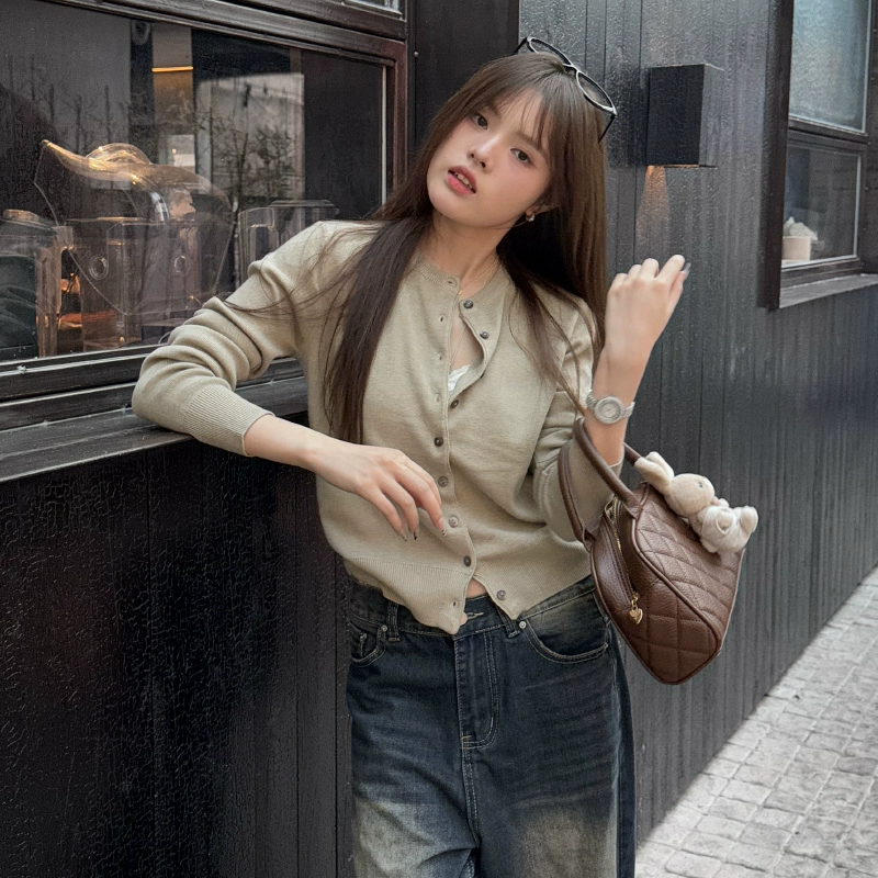 | nameOriginal | Simple basic round neck Korean blend outer cardigan |