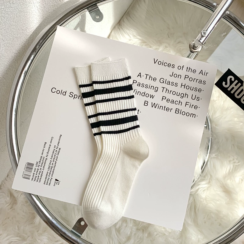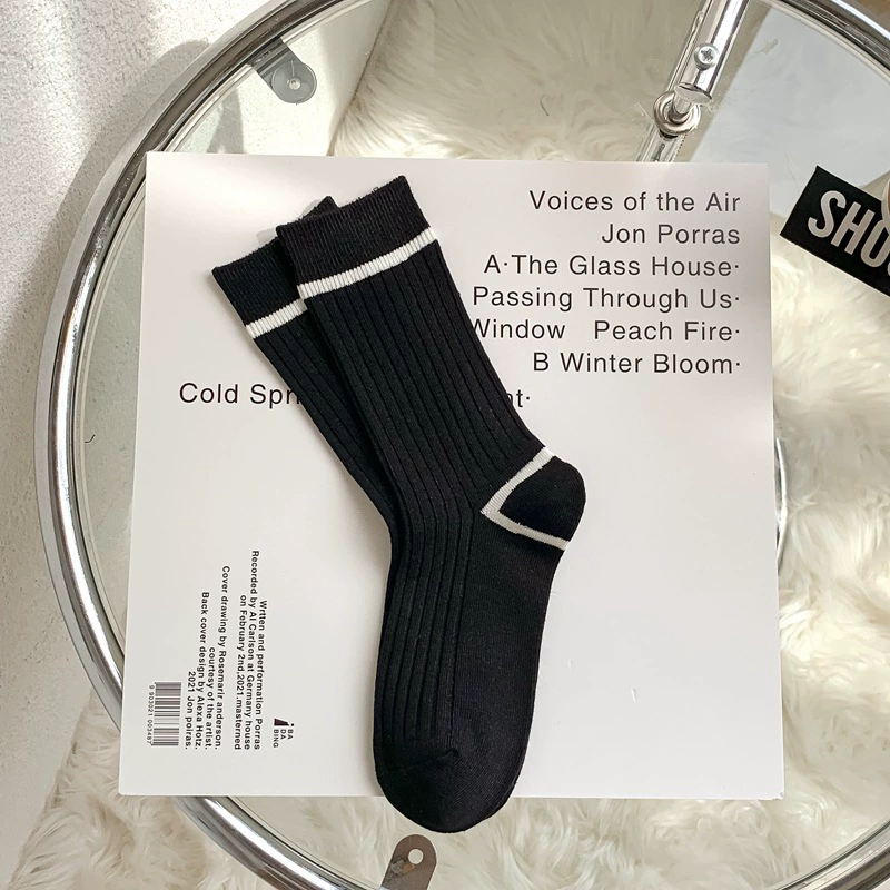 | nameOriginal | Simple black and white striped letter embroidery casual versatile breathable double-needle pile socks for women sports socks for women |