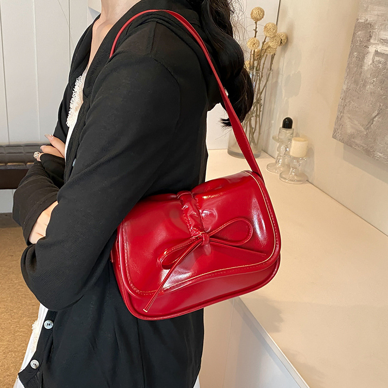 Simple Bow Niche Design Handbag Women’s 2024 Spring and Summer New Fashionable All-match Popular Shoulder Underarm Bag