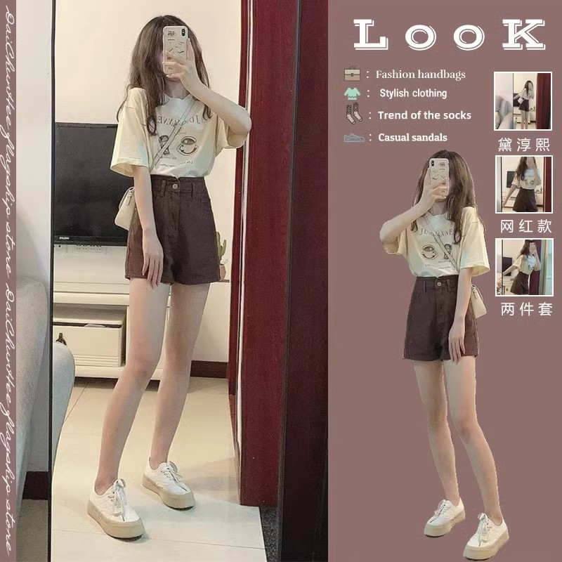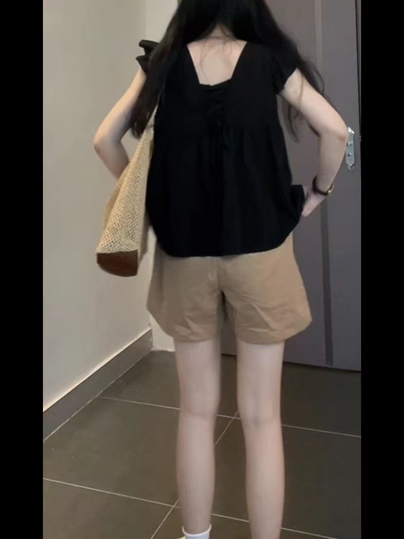 | nameOriginal | Simple Casual All-match Shirt suit Women's Early Summer New Arrival High Waist Shorts Slim-fit Flying Sleeve Top |